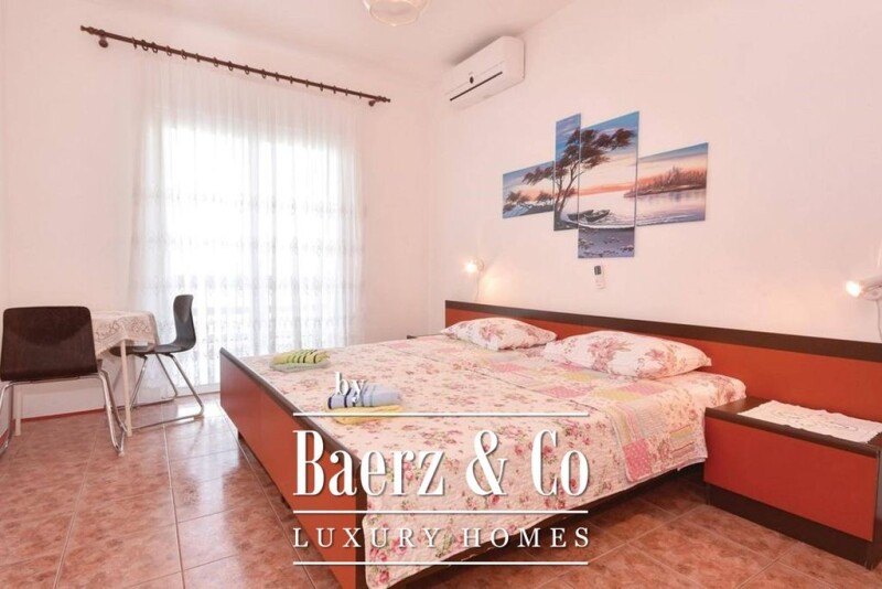 Island Čiovo, Slatine - house with swimming pool and direct access to a beautiful pebble beach. The house with a gross area of 260 m2 is located on a plot of 800 m2. On three floors there are 6 bedrooms, four bathrooms, a spacious living room with a kitchen and access to a terrace with a fireplace, a gym... In the yard there is a swimming pool with a sunbathing area, a jacuzzi and facilities for children. The house can still be expanded and the low attic can be raised and connected to the rest by an internal staircase. In addition to the garage space, seven more outdoor parking spaces are available. An exceptional location, right next to the sea and not far from all necessary facilities - ten minutes' drive from Split airport. More information on request.