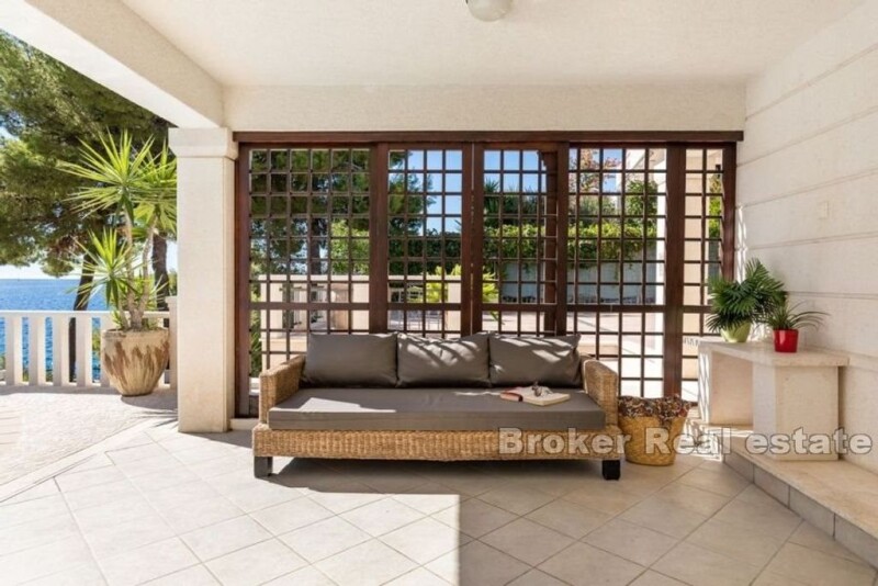 A unique villa located on the southern side of the island of Čiovo, in an extraordinary location in the first row to the sea. It is a rare property on the market considering the location, land area and cascading layout. It is surrounded by pine trees, is located in a quiet microlocation and has a southern orientation. There is a house with a surface area of 550 m² spread over three floors on a spacious plot of land. On the first floor, there are three bedrooms, two bathrooms, a toilet and a kitchen with a living room from which there is a spacious terrace. On the second and third floors there are two two-story apartments with three bedrooms each, bathroom, toilet and kitchen with dining room and living room. The facility is decorated with numerous terraces surrounded by pine trees with an open view of the sea. The entire facility is air-conditioned and has a garage with two parking spaces. It is equipped with a swimming pool, jacuzzi and numerous terraces and gardens with Dalmatian horticulture. Right in front of the building there is an untouched beach, and all other necessary facilities such as restaurants, cafes, shops and the town center are located within walking distance, while the airport is only 10 km away. An ideal investment due to the possibility of generating income from tourist rentals.