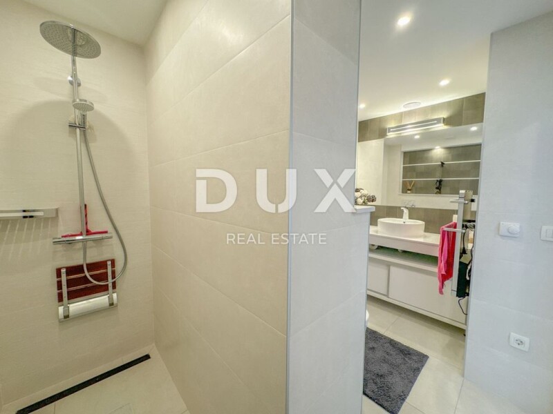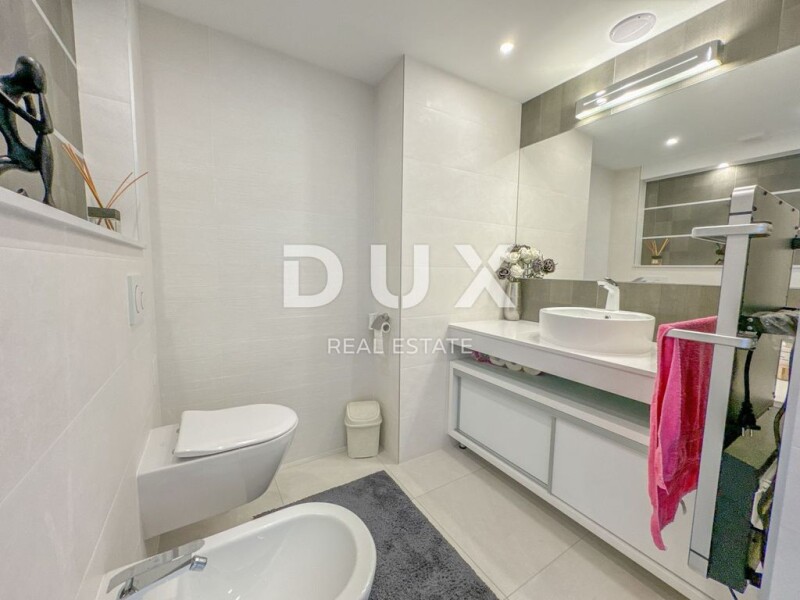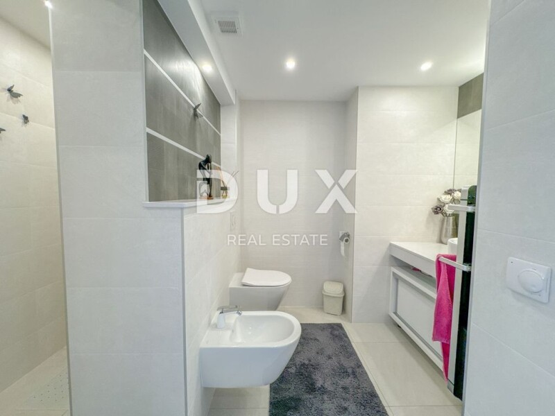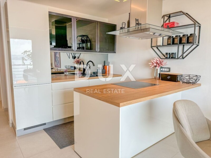 OPATIJA, CENTER - top-quality apartment in a new building with furniture, panoramic view, garage, elevator, swimming pool We highlight a beautifully decorated designer apartment of 61 m2 in a new building next to the historic Carmen Sylva promenade, with a terrace, in a building with a swimming pool, with one parking space in the garage, and shared parking outside the building for guests. The designer-decorated and untouched apartment stands out for its beautifully decorated and bright space, consisting of one bedroom with a king-size bed, a modern bathroom with a walk-in shower, a beautiful open-space living room with a dining room and a kitchen in beautiful wooden and white tones with the island. The entire open space has a stunning view of the Kvarner Bay and access to a covered balcony of 9.80 m2. With this fantastic apartment, we highlight: - electric underfloor heating - integrated cooling in the ceilings - designer furniture - custom-made kitchen - panoramic view - one parking space in the garage with storage and shared parking outside the building (guests) The great advantage of this apartment is its fantastic location in the quiet settlement of Zora, and the Carmen Sylva promenade is located close to the building, the center of Opatija and the beach can be reached in just a few minutes by car, while all other amenities such as shops, restaurants and the Lungomare promenade are only a few minutes away by car, and it can be reached on foot in 15 minutes. With the ownership of the apartment comes one parking space in the garage with one storage room, shared parking outside the building for guests, and access to the swimming pool. The building is surrounded by greenery and provides a peaceful stay and life. It is a perfect opportunity to buy an apartment in an exclusive building, in one of the most beautiful cities on the Adriatic. Dear clients, the agency commission is charged in accordance with the General Terms and Conditions. Marko Šutanovac Agent s licencom E- www.dux-opatija.com OPATIJA, CENTER - top-quality apartment in a new building with furniture, panoramic view, garage, elevator, swimming pool.