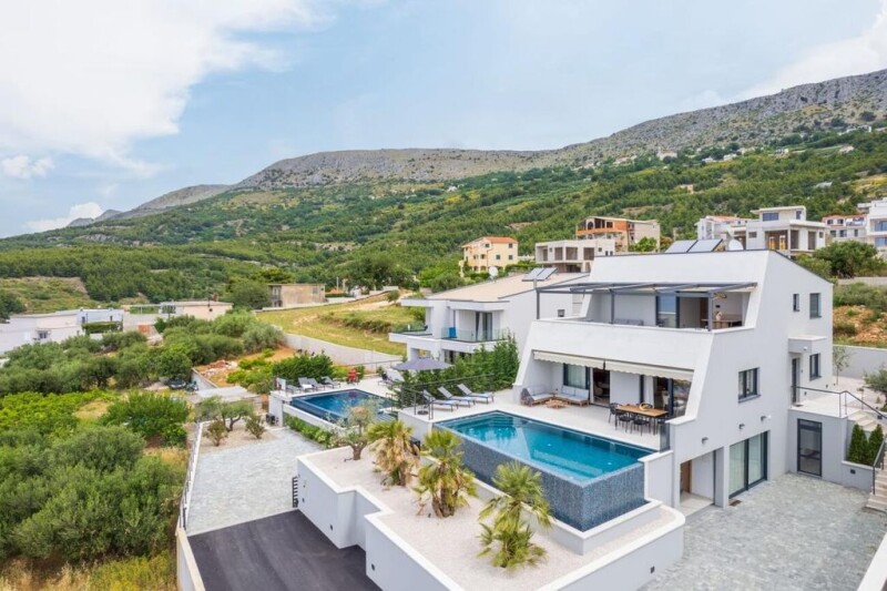 Luxury Villa for Sale Near Split – Stunning Sea View & Modern Design This exquisite modern villa is located in a prestigious neighborhood near Split, just 1,500 meters from the sea. Surrounded by upscale urban villas, it offers breathtaking panoramic views of the sea and nearby islands, making it an ideal retreat for those seeking luxury and natural beauty. Spanning 320 m² of gross area on 600 m2 of land, the villa is thoughtfully designed across three levels: basement, ground floor, and first floor. Basement: Features a wellness area, sauna, entertainment room, bathroom, garage, and utility room.Ground Floor: Designed for everyday living with an open-concept kitchen, dining area, and living room leading to a terrace with a private pool and sunbathing area. This level also includes two spacious bedrooms and two elegant bathrooms.First Floor: Hosts two additional bedrooms, two bathrooms, and a stunning terrace with a jacuzzi, offering an unforgettable sea view.This fully furnished and equipped villa is move-in ready, perfect for private living or as a high-end rental investment. For more details or to schedule a viewing, contact us today. Ref: RE-LB-IRO2434Overall additional expenses borne by the Buyer of real estate in Croatia are around 7% of property cost in total, which includes: property transfer tax (3% of property value), agency/brokerage commission (3%+VAT on commission), advocate fee (cca 1%), notary fee, court registration fee and official certified translation expenses. Agency/brokerage agreement is signed prior to visiting properties.