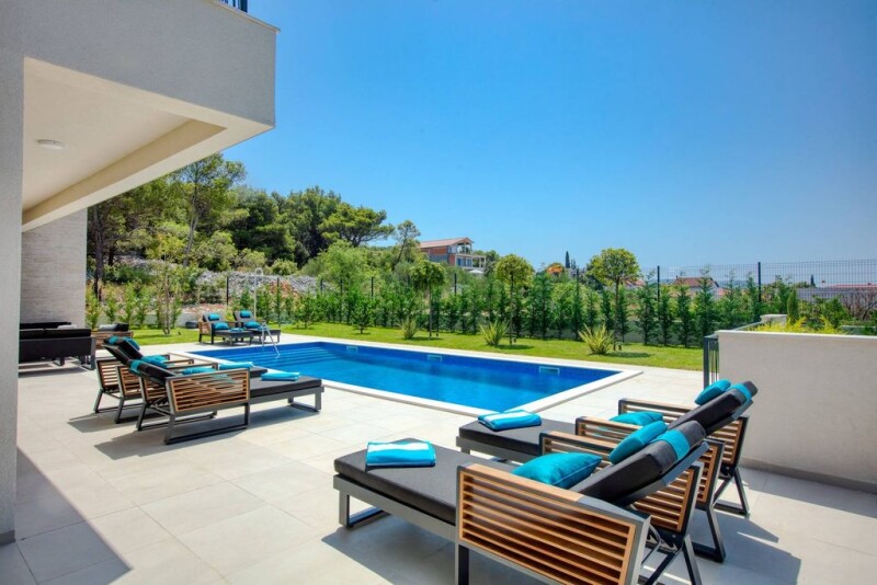 Situated in the serene surroundings near Šibenik, Villa Tranquillo is the epitome of relaxation and elegance. Set on a 1,000m2 plot, this stunning private villa spans 250m2 across two floors and offers a harmonious blend of luxury, comfort, and modern amenities. The ground floor features a contemporary kitchen equipped with top-of-the-line appliances. The kitchen seamlessly flows into the dining area and a spacious living room, where large windows flood the space with natural light, creating a warm and inviting atmosphere. For entertainment, you can unwind in the home theater, complete with a 75-inch flat-screen TV and surround sound system. This floor also includes a gym and a toilet. The first floor features four luxuriously appointed bedrooms. Each bedroom has a private bathroom and offers an intimate and tranquil relaxing atmosphere. Step outside, and you’ll find Villa Tranquillo’s true gem—a private outdoor oasis. A large terrace with a heated pool and deck chairs is perfect for sunbathing, socializing, or dining al fresco. The shaded lounge zone, equipped with outdoor speakers, creates the ideal ambiance for any occasion. A barbecue offers the perfect opportunity for outdoor cooking, while the covered dining area is ideal for family and friends gatherings. Every detail in the interior has been carefully considered to ensure a luxurious and comfortable stay. Modern amenities include Wi-Fi, air conditioning, underfloor heating, and a surround sound system that extends indoors and outdoors. Artwork by a renowned Croatian painter adorns the walls, adding a touch of sophistication to the villa’s modern design. The lush garden, filled with Mediterranean greenery, provides a serene backdrop and is a spot to relax or enjoy a quiet moment. The villa also features secure parking for up to three cars. Villa Tranquillo is more than just a place to stay—it’s a luxurious retreat designed for relaxation and rejuvenation. It perfectly combines modern luxury with tranquil surroundings. With its proximity to the historic town of Šibenik and the stunning Croatian coastline, Villa Tranquillo is the ideal base for exploring the region’s natural beauty, culture, and charm. This exceptional property promises an unforgettable escape where every detail has been thoughtfully crafted for an extraordinary holiday experience, but, at the same time, it is a great investment opportunity with great potential for tourist rentals.