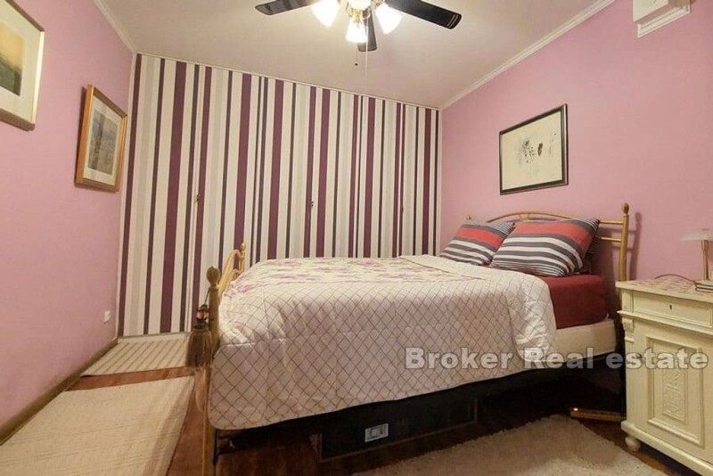 Detached house with a pool, total gross area of 350 m2, located on a plot of land of 1000 m2 in a small town not far from Split. The house consists of basement and ground floor. In the basement there is a room with a separate entrance, which is currently used as a warehouse, but can be converted into a tavern, a gym or other facilities according to the wishes of the future owner. On this floor, there is also a one-room apartment with its own entrance, bathroom, kitchen and space for socializing. On the ground floor there is a living room with a fireplace, a kitchen and a dining room with access to the terrace, a bathroom, and two bedrooms, one of which has its own bathroom. The living space is open-plan with a large amount of natural lighting. The interior is decorated with a classic and rich decoration style, and a lot of attention has been paid to all the details, which gives the house a special charm and a unique atmosphere. On the outside of the house there is a terrace with a large table, barbecue and heated and illuminated pool, all surrounded by greenery with cultivated autochthonous Dalmatian plants that provides complete privacy and peace, and right next to the land there is a stream that completes the picture of this idyllic oasis that surrounds house on three sides. The house uses a septic tank and is connected to the water supply network, while a well that can also be used for the house is used to irrigate the garden. The property also has its own garage, as well as parking for several cars, and is equipped with video surveillance, underfloor heating and central air conditioning. The sea is a 10-minute drive away, and the town itself has all the facilities needed for everyday life. It is a property with a special ambiance that offers its users peace and privacy in a beautiful natural environment, and is ideal for year-round living as well as for tourist rentals.