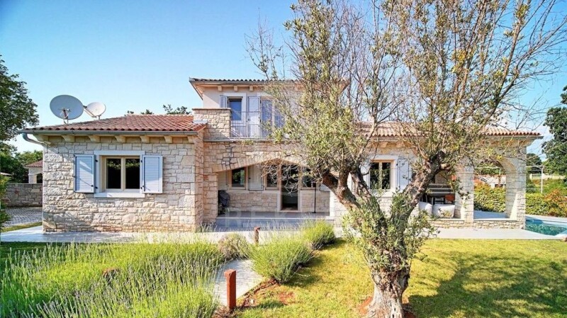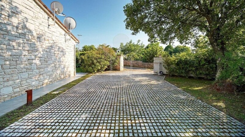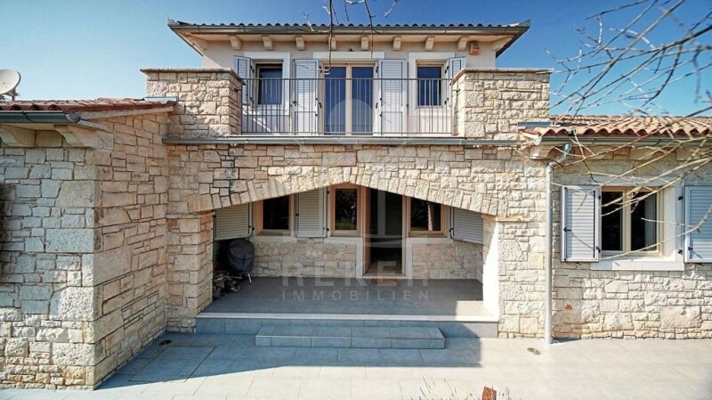 Traditional stone house villa with modern comfort in Istria not far from Rovinj Discover the perfect combination of tradition and luxury in this unique stone house villa in the enchanting region of Istria! The villa offers modern comfort and is located in a quiet and natural environment. You will enjoy the charm of the famous coastal town of Rovinj, which is just a stone's throw away. The property impresses with its well-kept lawn with automatic irrigation, a beautiful stone wall and a modern metal door with sliding opening. The LED outdoor lighting sets the scene for the property and creates an atmospheric atmosphere. The skimmer pool offers welcome cooling on hot summer days. Enjoy the view of the rural surroundings from your own balcony. Here you will experience the perfect vacation. ~.