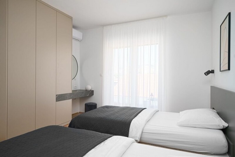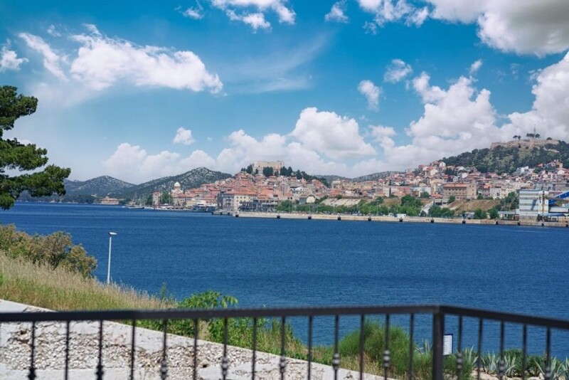Modern semi-detached house in the 2nd row to the sea This offer is a modern semi-detached house in an attractive location in the second row to the seashore in Sibenik, Mandalina district near the D-Marin marina (with restaurants and bars). The semi-detached house was built in 2020 on a plot of approx. 281 m² and offers a living space of approx. 183 m² with the following rooms: Lower floor: living room, kitchen and dining area, storage room, bedroom, two bathrooms, terrace Upper floor: two bedrooms, one bathroom, loggia You can enjoy a wonderful, side view of the sea and the old town of Sibenik. The house is high quality equipped and is offered for sale including the high quality furnishings. There are parking spaces outside the semi-detached house. Please contact us for more information and viewings. www.panorama-scouting.de | Real Estate in Croatia | only properties with sea views and directly on the sea www.panorama-scouting.com | Real Estate Croatia | Seafront Properties And Properties With Sea Views German | English | Français | Italiano Air conditioning (in all rooms), furniture, storage room, parking spaces, mosquito nets, electric blinds, high-quality household appliances.