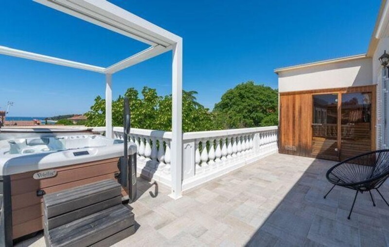 Magnificent villa with swimming pool in Rovinj just 140 meters from the sea, with slight sea views! Total area is 350 sq.m. Land plot is 545 sq.m. Villa was constructed in 2019. The villa is surrounded by well-maintained Mediterranean vegetation, making the poolside and sunbathing area enjoyable throughout the year. The ground floor comprises a luxurious entrance hall, an open-plan living area consisting of a living room with a fireplace, a fully equipped modern kitchen, and a dining room. The modern interior, furnished with high-quality furniture and equipment, is designed for maximum comfort and functionality. A glass wall provides a seamless connection between the indoor and outdoor spaces. Also on the ground floor are a study with a bathroom, a guest room with a bathroom, a toilet, and a storage room. On the first floor, there are two bedrooms with en-suite bathrooms and private terraces, ideal for enjoying morning coffee with a sea view. The master bedroom on the second floor includes its own bathroom, a private area with a Jacuzzi and sauna, providing the pinnacle of indulgence. An entertainment room with a bathroom and access to the terrace is an additional space for socializing. A unique feature of this villa is the two elevators that facilitate communication within the house and ensure a permanent sea view from the terrace. The villa is designed to function as two separate residential units. The property has two parking spaces. This property represents a blend of high elegance and functionality, offering a comfortable lifestyle with the opportunity for investment in elite tourism. The location of the villa is one of the most attractive destinations in Croatia. Ref: RE-U-28685Overall additional expenses borne by the Buyer of real estate in Croatia are around 7% of property cost in total, which includes: property transfer tax (3% of property value), agency/brokerage commission (3%+VAT on commission), advocate fee (cca 1%), notary fee, court registration fee and official certified translation expenses. Agency/brokerage agreement is signed prior to visiting properties.