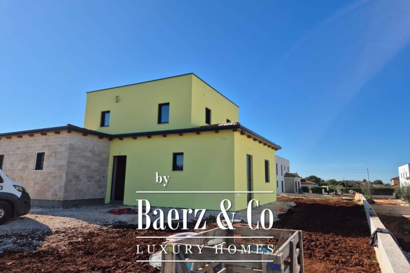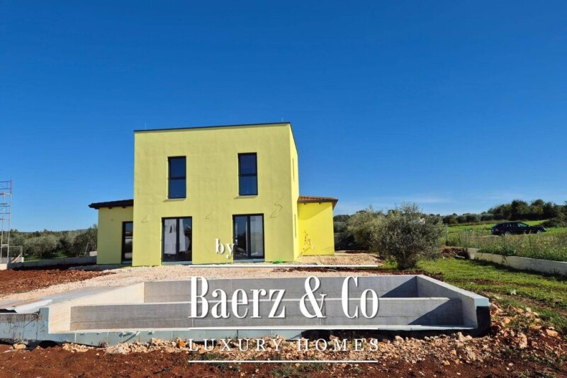 In Istria, not far from Poreč, there is a beautiful detached house with a large garden of 1,036 m2. The house is spread over 2 floors, with a net area of 147m2: Ground floor: entrance hall, guest toilet, laundry room, open space kitchen, dining room and living room with access to the terrace with sun deck and infinity pool, bedroom with its own bathroom and access to the terrace, engine room. First floor: 2 spacious bedrooms with private bathrooms. The house also has 2 large covered parking spaces, preparation for solar panels and a heated pool. We are at your disposal for more information.