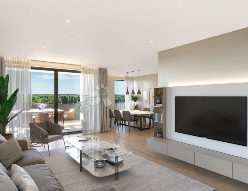 Located in the heart of beautiful Umag, one of the most renowned gems of Istria, this apartment offers the perfect combination of modern comfort and Mediterranean charm. Umag is known for its rich history, narrow streets, authentic restaurants, and crystal-clear beaches that take your breath away. The city is also home to numerous cultural and sports events, including the world-famous ATP tournament, making it an ideal place to live, vacation, or invest. The apartment, with a total area of 133.60 m², is designed to provide maximum functionality and comfort. The interior consists of a spacious bedroom, an elegant bathroom, and a bright living room with an open-plan kitchen and dining area. The living spaces are filled with natural light, while the 28.00 m² terrace with a sea view creates a perfect spot for relaxing, enjoying the sea breeze, and listening to the sound of the waves. The apartment is being constructed with high-quality materials that guarantee durability and comfort. It is equipped with underfloor heating powered by a heat pump, while cooling is provided through fan coil units. The aluminum joinery with triple-glazed windows ensures top-notch thermal and sound insulation. The future owner has the option to purchase an outdoor parking space for €20,000 or a garage parking space for €30,000, adding to the convenience and flexibility of this property. The energy class A+ ensures high energy efficiency and lower energy consumption, while the Wi-Fi connection provides all the advantages of modern living. The apartment is located just 200 meters from the beach and close to all essential amenities such as shops, restaurants, cafes, and cultural attractions that make Umag unique. This property is the perfect choice for those seeking peace and the beauty of the Mediterranean, whether as a permanent residence, a luxurious weekend getaway, or an investment in tourist rentals. Note: The price is listed without VAT.