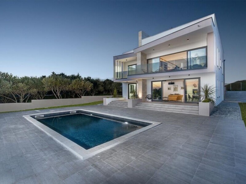 Check out this fascinating contemporary piece of architecture that is located in Zadar, one of the most historical cities on the entire Adriatic coast. This 210 m2 property sits on a lavishing 1000 m2 land and overviews Zadar bay and its stunning region. White clean-cut stone in the combination with blue water almost looks surreal. Magnificent and stunning on the outside, the house doesn’t lack in its performance on the inside at all. This villa is fully equipped and thoughtfully styled with 5 bedrooms and 4 bathrooms. In addition to that, there is a built-in gym room that will be absolute heaven for those who are into a healthy lifestyle! Now you can experience wellness from the comfort of your own home. The house itself advocates clean and neat decor. This two-floor masterpiece of a villa is topped with only high-end house appliances to make sure your accommodation is as extravagant but simple at the same time. An interesting combination of stone materials, ultra-modern led lighting, and many other features make sure your accommodation fits the standards you are looking for. The outdoor space is simple but classy, and with that large swimming pool on a ground floor terrace, you will be able to enjoy luxurious living right here, while you will be blown away with all those stunning sunsets over the bay of Zadar. With the first beach being just 2,5 km away this place is mostly accessible by private transportation. Perfectly situated in a respectful neighborhood it is surrounded by lovely untouched nature providing you with more than enough privacy to enjoy your stay. Next to the terrace area on the ground floor, there is a small garden area, which can be used either for aesthetic or agricultural purposes depending on your preferences. With all being said this house is a truly blank canvas and has plenty of free space to upgrade whether it comes to the exterior or interior space. Versatile in its character this stunning piece of property is ideal for someone with an adventurous and creative vision. At the same time, while you are practically secluded in a lovely area, you are still close to the city center of Zadar if you want to experience all what that city life has to offer. With Zadar being under UNESCO’s heritage list you will have more than enough sightseeing to explore as this wonderful city is rich in its cultural and historical heritage. Hurry up and contact us for more information, because we from the Croatia Real Estate agency are always happy to help and make all your demands come to reality. Explore all of what this magical historical city has to offer by diving into this interesting offer!.
