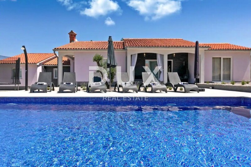 ISTRIA, LABIN - House with a swimming pool On the southeastern coast of Istria, where green hills meet the sea, where nature and heritage unite, there are two towns of similar size with different but complementary characters - Labin and Rabac. The picturesque town of Labin rises on a 320-meter-high hill, only four kilometers from the white pebble beaches of Rabac. Interwoven with a rich history and mining that marked this area, Labin, which was briefly declared an independent republic, is today a fascinating city of contradictions; old and new, history and present, tourism and art. In the suburbs of the town of Labin, a house with a swimming pool is for sale. It is located in a peaceful environment far enough away from the hustle and bustle and yet close to all shopping, cultural, educational and recreational facilities. The house of timeless design reveals all the beauty of simple exterior architecture. It is defined as a single-storey house consisting of one tastefully decorated and well-equipped residential unit with an emphasis on comfort. The functional, airy living space with plenty of daylight and warmth throughout the day is clearly defined and maximally utilized. It consists of a living room, a kitchen with a dining room with access to a covered terrace, three bedrooms, two bathrooms and a room with a sauna. The floor plan is complemented by a garage. The yard is decorated and fenced in terms of ambience and horticulture and contains a 38 m² swimming pool with a sunbathing area and a lounge area covered by a pergola. The excellent location and spatial organization of the interior and exterior of this property provide an opportunity for a comfortable family life or an investment in a tourist rental business. Dear clients, the agency commission is charged in accordance with the General Terms and Conditions: www.dux-nekretnine.hr/opci-uvjeti-poslovanja Iva Zajc Agent s licencom E- www.dux-istra.com Lara Jović Agent s licencom E- www.dux-istra.com ISTRIA, LABIN - House with swimming pool.