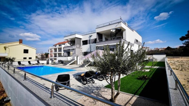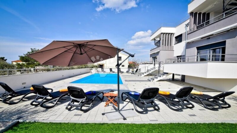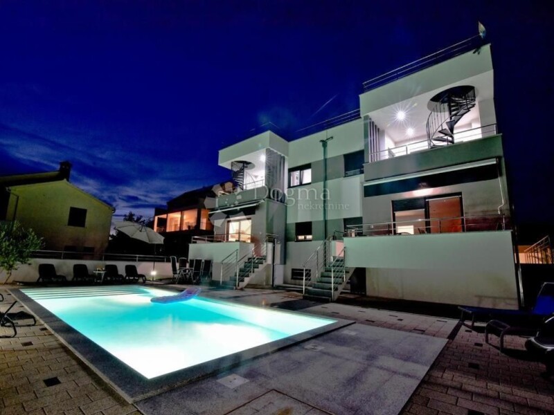 Exclusive Villa with Sea View in Diklo, Zadar Nestled in the heart of the picturesque Diklo neighborhood in Zadar, this exceptional villa represents the ultimate in luxury and sophistication. With an impressive area of 504 square meters, this property stands out not only for its size but also for a range of exceptional features that strike the perfect balance between sophistication and functionality. This beautiful residence comprises six spacious bedrooms, each carefully designed to provide maximum comfort and privacy. Additionally, two fully equipped kitchens reflect modern standards and lifestyle, while two expansive living rooms provide space for relaxation and socializing. The villa's uniqueness is exemplified by ten elegant bathrooms, accompanying each bedroom, ensuring a top-tier luxury experience. Moreover, the basement offers additional potential with the possibility of creating a wellness space and gym, further enriching your daily routine. The extraordinary large rooftop terrace offers a panoramic view of the islands and the sea, creating an ideal setting for relaxation and enjoyment of the Mediterranean ambiance. Furthermore, the spacious pool represents an oasis of refreshment and luxury. Each room in the villa is equipped with air conditioning, while the entire house enjoys underfloor heating, providing not only aesthetic pleasure but also practicality and comfort throughout the year. This exclusive villa is being sold fully furnished, providing you with the opportunity to immediately indulge in all its splendors. Its private location in the tranquil part of Diklo makes it a perfect retreat, while still being close to all essential amenities. For those seeking a premier home that simultaneously offers luxury, comfort, and a beautiful view, this villa presents a unique opportunity. For additional information and to schedule a viewing, feel free to contact us. Contact: Jakov Kutija: +385958938595 Paula Habek: +385916118855.
