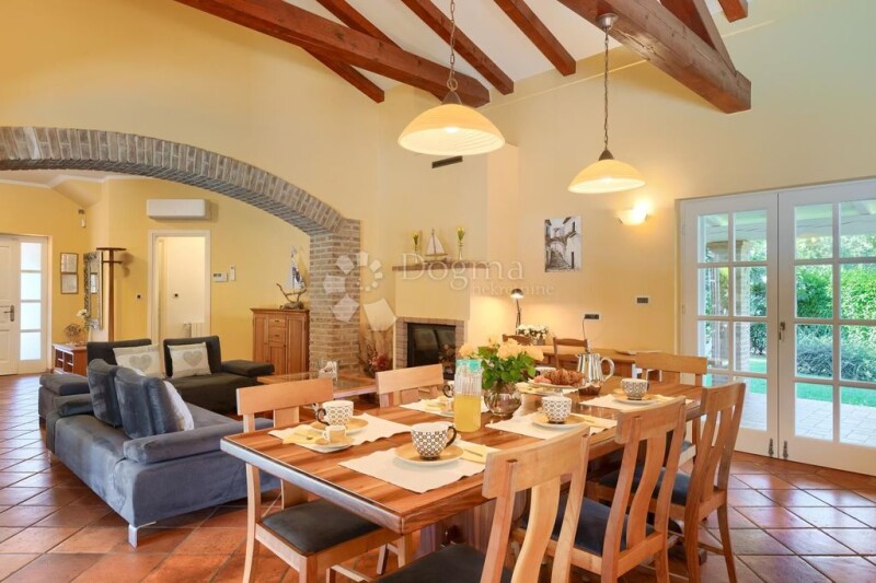 LUXURY SPACIOUS VILLA WITH A SPACIOUS GARDEN OF 4200M2 IN A SEPARATE PLACE - POREČ SURROUNDINGS This spacious and modernly equipped family house offers the ideal combination of comfort, functionality and privacy. Located in a quiet and green environment, the house covers an area of 245 m², and next to the house there is an additional legalized building of 60 m². The 4200 m² garden with a beautiful swimming pool and a large courtyard makes this property a perfect choice for family life. Main data: - House area: 245 m² - Additional building area: 60 m² (legalized) - Land area: 4200 m² - Year of construction: 2010 - Number of rooms: 8 - Number of bedrooms: 4 - Number of bathrooms: 2 - Number of toilets: 2 - Parking: 2 covered spaces - Swimming pool: 6 x 10 m (unheated, marked) - Alarm system and 6 security cameras Detailed property description: The house is spread over two floors. Upon entering the space, we enter a world of functional design and comfort. The open-space style living room is the perfect place for family gatherings and enjoying moments together. On the right side of the ground floor there are three bedrooms, and on the left side there is a guest toilet, boiler room and stairs leading to the first floor. On the first floor there is a master bedroom with its own bathroom and access to a balcony, from which there is a beautiful view of nature, ideal for relaxation. The additional building in the yard (60 m²) is currently used as a warehouse, but can be converted into a workshop, office or any other space according to your needs. The building is equipped with a toilet and a kitchenette. Technical characteristics: Heating and cooling: The lower floor has gas underfloor heating, while all radiators on the upper floor and in the bedrooms are equipped with air conditioners for additional comfort. Infrastructure: The house is connected to the municipal infrastructure (water, electricity), while sewage is not available, so the house is equipped with a septic tank. Security: The house has an alarm system and 6 security cameras, ensuring the peace and security of your home. Additional information: The house is being sold furnished, which allows immediate move-in without additional investments. There is a 6x10 m swimming pool in the yard, which is marked, but not heated. The additional building (60 m²) can be adapted to your needs - it is ideal as a warehouse, garage, office or hobby space. This house is the perfect choice for a family looking for a comfortable, functional and safe space, with a large yard, swimming pool and an additional building for various purposes. Take advantage of the opportunity to become the owner of this fantastic property! For more information or to arrange a viewing, please contact us. For more information and to arrange rental terms, please contact us. STEFANO PERUŠKO LICENSED AGENT Mobile 099/721-0395 stefano.perusko@dogma-nekretnine.com KARLO ŠESTAN Brokerage Assistant Mobile: +385 91/361-1922 karlo.sestan@dogma-nekretnine.com.