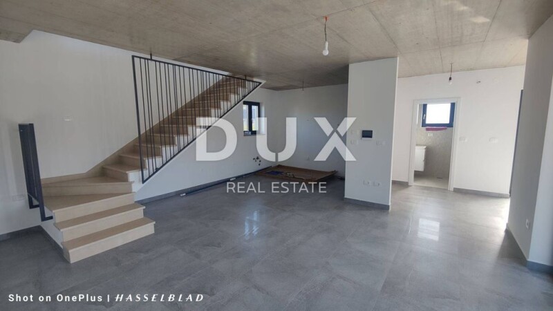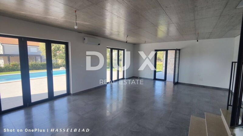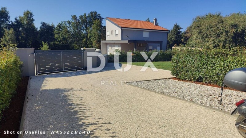 ISTRIA, POREČ - A beautiful villa in a top location Bathed in a pleasant Mediterranean climate, located in the heart of the western Istrian coast, the ancient town of Poreč and its coastline of preserved natural beauty, landscaped parks, pine and oak groves that reach the sea itself, along which clear sea, beaches, bays and islands are spread over area of 139 km² and consists of 58 settlements. With the identity of an urban coastal city, Poreč is a city of culture, sports, entertainment, tourism and genuine hospitality. One of the most attractive cities of Croatian tourism that uniquely combines the natural beauty of Istria, rich cultural and historical heritage and the most modern amenities of a top tourist destination. The harmony of the old town core, which is a cultural monument, with one of the most famous Istrian cultural monuments, the Euphrasian Basilica, which is on the UNESCO World Heritage List, and the most organized and best equipped tourist resorts on the Adriatic forms a mosaic of unforgettable experiences. Poreč is also a city that is much more than a summer destination of sun and sea. Poreč is a city tailored to man. A city where there is a constant impulse for better living conditions and greater progress in various spheres. A city that is a pleasant, safe and well-arranged place to live where everyone can find their place, a city without surcharges with high social sensitivity for all generations. A few minutes' drive from the city of Poreč, surrounded by greenery and nature, located in a quiet street, there is this beautiful modern detached house with a swimming pool and a large garden! The house has a total area of 144 m2 and extends over two floors. On the ground floor there is a large living room with an open kitchen and dining room, an entrance hall and a toilet. From the living room there is access to a covered terrace from which you can access the landscaped garden area of 942 m2 and a swimming pool with a sunbathing area. An irrigation system for the lawn was implemented. In addition, the water and electricity installations were carried out to a large oak tree so that a summer kitchen could be built in the natural shade. The first floor is accessed by an internal staircase, where there is a master bedroom with a separate bathroom and a beautiful open terrace. Upstairs there are two more spacious bedrooms connected by a terrace and another nice bathroom. There is air conditioning in every room, and it is possible to install a fireplace in the living room. The first phase of floor heating and installation for solar heating on the roof were installed so that in the future they could have an efficient heating system with low energy consumption. The house is unfurnished, which gives the new owners the freedom to furnish according to their own wishes. Thanks to its location, this property is ideal for those who seek peace and privacy or want to invest to provide the same experience to guests for tourism purposes. It is located just a few minutes' drive from Poreč in a quiet place at the very edge of the forest and the beautiful autochthonous Istrian nature. It is interesting that in the vicinity there are various adventure and tourist facilities, quality restaurants, cafes, promenades, bicycle paths in nature, shops and other necessary facilities. The sea and beaches are a 6-minute easy drive away. Dear clients, the agency commission is charged in accordance with the General Business Conditions: www.dux-nekretnine.hr/opci-uvjeti-poslovanja DUX Poreč E- www.dux-istra.com ISTRIA, POREČ - Beautiful villa in a quiet location.