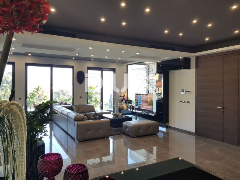 OPATIJA, CENTER - an impressively modern villa with a swimming pool in the center of Opatija, a few steps from the Lungomare In the heart of Opatija, known for its elegance and luxurious spirit, there is a modern villa with a minimalist charm that carries with it the seal of uncompromising quality and exclusivity. Its position represents much more than an ordinary location - it is a harmony of silence, privacy and an incredible view of the sea horizon. On that unique plot of 722 square meters, a structure has sprung up that tells a story without a single spoken word. This villa is not just an ordinary home; it is a real architectural masterpiece, made with precision and attention to every detail. The carefully arranged exotic greenery around the villa creates the feeling that you are in your own tropical paradise. The sunbathing area by the pool becomes your personal paradise for relaxation, where every moment becomes a precious feeling of eternal happiness. The villa is organized on four levels, each offering its own coordinated space and functionality. In the underground floor, among its solid walls additionally insulated with hydro and thermal insulation, there is a spacious garage where your four-wheelers can safely spend the night. On the ground floor, the elegant one-bedroom apartment is the perfect blend of style and comfort, and the modern kitchen becomes your own stage for cooking. On the first floor, there is an apartment with two spacious bedrooms, each offering its own intimate corner where everyone can feel at home. But the real treasure is on the second floor - it's a gentleman's three-story apartment, your personal palace. Four spacious bedrooms invite a feeling of spaciousness and luxury, each with its own terrace and incredible sea view. Here, comfort meets wellness and fitness, creating a perfect balance between body and mind. The Jacuzzi on the terrace becomes your haven for relaxation under the starry sky. This villa not only offers aesthetic beauty, but is also a technically outstanding work. ACO skylights create a play of light, while Porotherm brick 30 cm thick and silicone thermal facade provide excellent insulation. Alucobond sheet metal and special LED lighting add an impression of futurism and elegance. SCHUCO carpentry and ROLTEC blinds bring a sense of security, and video surveillance systems and an anti-burglary system guarantee your peace of mind. The interior world of the villa is also at the level of extravagance, with branded sanitary ware, DAIKIN heat pump systems and underfloor heating that even reaches the basement floor. Here, every detail has been carefully considered to create a haven of comfort and luxury. This villa is not just real estate, but a dream come true. Looking towards the future, this modern oasis of minimalism and luxury is waiting for its owners to write their story of life in the middle of this magical corner of Opatija. Marko Šutanovac Agent s licencom E- www.dux-opatija.com OPATIJA, CENTER - an impressive modern villa with a pool in the center of Opatija, a few steps from the Lungomare.