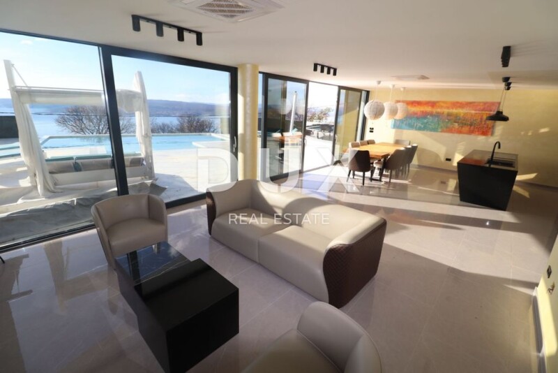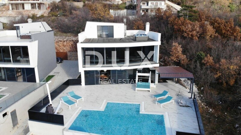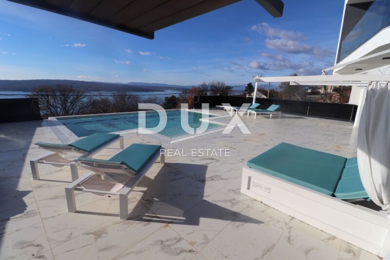 CRIKVENICA - Impressive modern villa with swimming pool We offer a beautiful modern villa in a great location above the town of Crikvenica. The villa has a spectacular view of the sea and the island of Krk. It consists of an entrance area on the ground floor, which also houses the living room with dining room and kitchen, as well as a bedroom and bathroom. Upstairs there are three bedrooms, each with its own bathroom, and a roof terrace with a jacuzzi and sun deck. It is fully equipped and furnished with designer furniture and is being sold as such. Additional equipment includes air conditioning in every room, underfloor heating, heat pumps and a central vacuum cleaner. The villa is categorized with the highest energy class, and the garden includes 3 parking spaces and an infinity pool 9x5x1.5. It is sold fully furnished. Designer furniture, antique structures and paintings are included in the price. Dear clients, the agency commission is charged in accordance with the General Terms and Conditions. Mladen Bistričić Agent s licencom E- www.dux-nekretnine.hr Marco Matešković Agent s licencom E- www.dux-nekretnine.hr CRIKVENICA - Impressive modern villa with pool!.