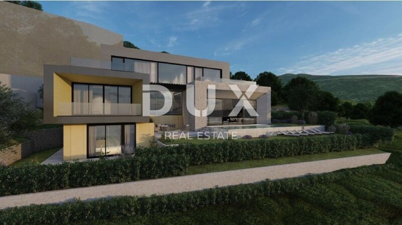 OPATIJA, CENTER - imposing villa above the center of Opatija with a panoramic view of the sea and a large garden We present a special villa located on the Opatija Riviera above the very center of this beautiful city, only 470 meters as the crow flies from the sea, with a panoramic view of the sea, islands and mountains, with a beautiful large garden of 920 m2 and a swimming pool. It is a beautiful luxury villa on 3 floors, and consists of a spacious hallway, a wonderful and illuminated open space living room that communicates with the kitchen and dining room, from which a magnificent view of the sea can be seen through the glass walls. We emphasize that the master bedroom with en suite bathroom extends over one part of the first floor and opens onto the garden and pool. A large staircase leads to the 2nd floor with 3 luxurious bedrooms with en suite bathrooms, and each room is south-facing and has a beautiful view of the sea. In the basement there is a fitness room, as well as a large wardrobe. The special feature of this property is its quality construction and exceptional location near the center of Opatija, the Lungomare promenade, the Summer Stage and all the accompanying amenities. The villa will be built surrounded by lush greenery in a quiet cul-de-sac and will thus ensure privacy and comfort along with a wonderful experience of the Kvarner Bay. The villa is located just a 1-minute drive from the center of Opatija and Slatina beach, thus ensuring a perfect stay and life in the beauty of the Adriatic - Opatija. Dear clients, the agency commission is charged in accordance with the General Terms and Conditions. Marko Šutanovac Agent s licencom E- www.dux-opatija.com OPATIJA, CENTER - imposing villa above the center of Opatija with a panoramic view of the sea and a large garden.