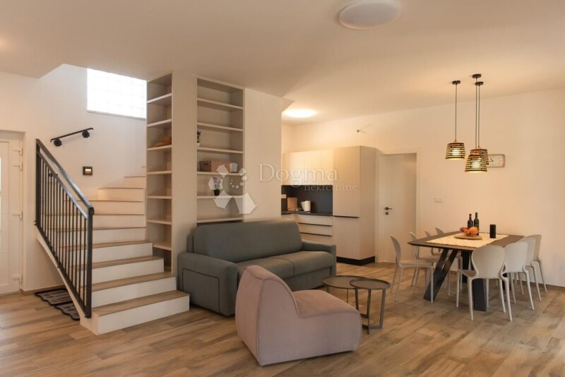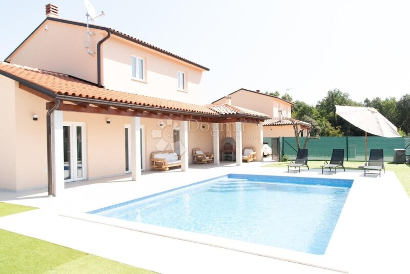 Fažana is a picturesque fishing village located on the west coast of Istria, known for its authentic atmosphere and proximity to the Brijuni National Park. This coastal resort offers the perfect environment to relax and enjoy the Mediterranean lifestyle. The house is located in a quiet street, only ten minutes from the city center, beautiful promenades and beaches. In a natural environment, full of greenery, there is a detached new house with an area of 150 m2 with a beautiful swimming pool, located on a plot of land of 640 m2, which is surrounded by laurel seedlings around the entire plot planted with a wire fence. The 32 m2 pool is equipped with a solar heating system, electrolysis, automatic refilling, and night lighting. The ground floor of the house consists of a living room with a kitchen and dining room, one bedroom with its own bathroom, a storage room, an additional bathroom, and a terrace with a fireplace, an outdoor shower, and a saltwater pool. There are two bedrooms on the first floor. Each room has its own bathroom. Heating is via electricity, gas underfloor heating and solid fuel fireplaces, providing a variety of options for comfort. All rooms are equipped with air conditioning, and the house has video surveillance and an alarm. The house is sold fully equipped and furnished. The location is quiet, full of greenery and beautiful houses, only 1500 meters from beautiful beaches and promenades, and all the necessary facilities are nearby, so it can serve as an excellent investment for rent as well as a choice for private use and comfortable living. This property represents the perfect combination of luxury, comfort and beautiful surroundings, providing an ideal place to enjoy the Mediterranean lifestyle. Your contact for inquiries: Filip Pandurić Licensed agent Mobile: +385 99 337 5980 E-mail: filip.panduric@dogma-nekretnine.com.