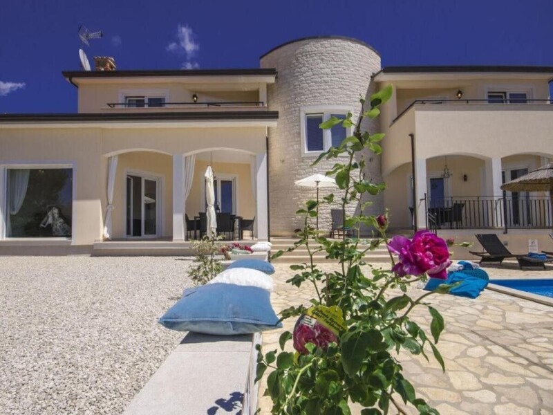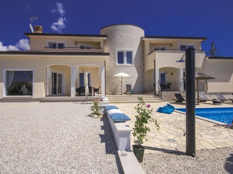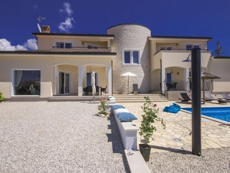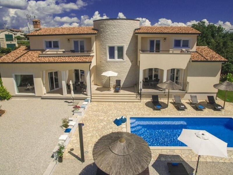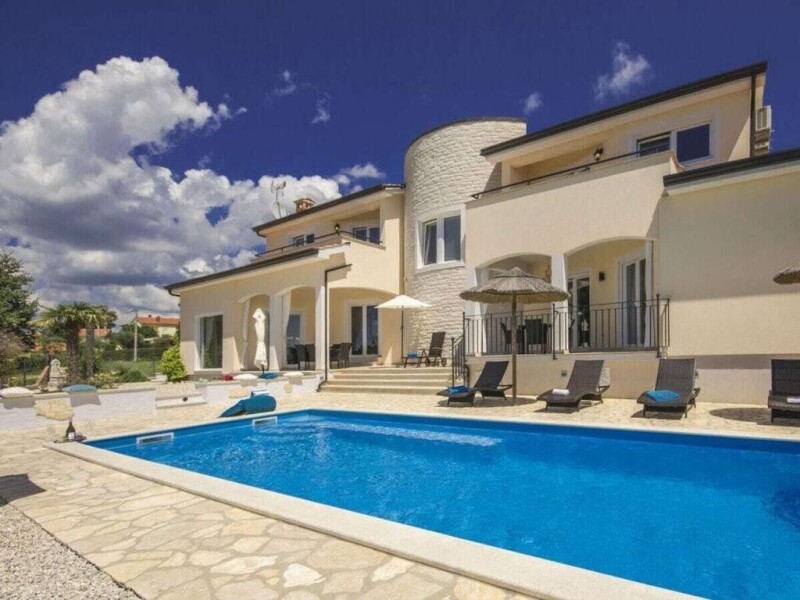 Location: Umag Built: 2017 Umag center: 26 km Sea: 8 km Airport distance: 19 km Inside space: 245 m2 Plot size: 832 m2 Bedrooms: 5 Bathrooms: 4 Swimming pool: 29 m2 Parking: 3 Air-conditioner Patio Playground Garden.