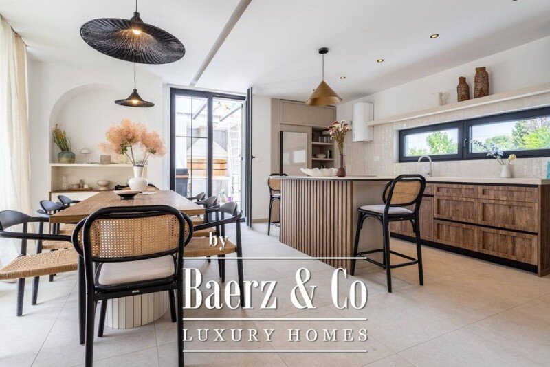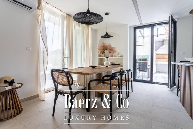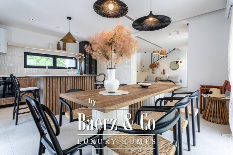 Newly built villa with a swimming pool in the immediate vicinity of the sea with a gross area of 283 m2 on a plot of land of 1039 m2. It consists of two floors and a spacious yard. On the ground floor there is a kitchen, dining room, living room, storage/technical room, bathroom and one bedroom. There are three bedrooms on the first floor. The master bedroom has a walk-in wardrobe, a bathroom and its own spacious terrace, the remaining two bedrooms share a common bathroom and each room has its own loggia. In the yard of the villa there is a covered summer kitchen with chimney, swimming pool, sunbathing area, landscaped garden and covered and uncovered parking for cars. Heating and cooling is solved by six air conditioning units, floor heating and solar systems have been installed. The villa is sold fully furnished, with carefully selected furniture by the interior designer. It is located first row to the sea, only 20 m from the beach, close to all essential amenities. The above makes it ideal for a comfortable life, but also for an investment for the purposes of tourism business. More information on request.