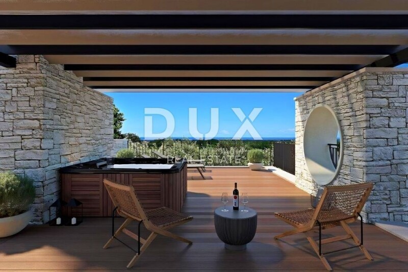 ISTRIA, POREČ - Exclusive villa with modern rustic design Bathed in a pleasant Mediterranean climate, located in the heart of the western Istrian coast, the ancient town of Poreč and its coastline of preserved natural beauty, landscaped parks, pine and oak groves that reach the sea itself, along which clear sea, beaches, bays and islands are spread over area of 139 km² and consists of 58 settlements. With the identity of an urban coastal city, Poreč is a city of culture, sports, entertainment, tourism and genuine hospitality. One of the most attractive cities of Croatian tourism that uniquely combines the natural beauty of Istria, rich cultural and historical heritage and the most modern amenities of a top tourist destination. The harmony of the old town core, which is a cultural monument, with one of the most famous Istrian cultural monuments, the Euphrasian Basilica, which is on the UNESCO World Heritage List, and the most organized and best equipped tourist resorts on the Adriatic forms a mosaic of unforgettable experiences. Poreč is also a city that is much more than a summer destination of sun and sea. Poreč is a city tailored to man. A city where there is a constant impulse for better living conditions and greater progress in various spheres. A city that is a pleasant, safe and well-organized place to live where everyone can find their place, a city without surcharges with high social sensitivity for all generations. In the vicinity of the city of Poreč, an exclusive villa with a modern rustic design is for sale. Located in an idyllic settlement, it was designed respecting the profession, legal regulations and spatial planning documentation and was built according to the highest standards for residential construction. With its tame architecture, it does not disturb the environment, but creates a synergy of the natural environment, traditional Istrian architecture and modern design. Design simplicity resulted in the creation of a compact floor plan and a pleasant airy space. It was conceived as one residential unit that extends over two floors with a modern interior that exudes elegance and simplicity and provides a high level of comfort. The ground floor consists of an open concept space that unites the living room, dining room and kitchen with access to a terrace covered with a pergola. The floor plan of the ground floor is complemented by a bedroom with its own bathroom, a guest toilet, a laundry room, a technical room, a storage room and a hallway. Upstairs there are three bedrooms with their own bathrooms, and the master bedroom has access to its own balcony. The entrance hall has access to a partially covered spacious terrace of 78 m² with a hot tub and a view of the sea and the surrounding area. The yard is completely fenced and elegantly decorated with grassy areas and Mediterranean plants. The central place is occupied by a pool of 50 m² with salt water. The yard also contains a summer kitchen of 42 m² with a toilet and a covered parking lot with a storage area of 60 m². This perfectly integrated property is an exceptional opportunity for a comfortable family life as well as an investment investment in the tourist rental business. Dear clients, the agency commission is charged in accordance with the General Terms and Conditions: www.dux-nekretnine.hr/opci-uvjeti-poslovanja Iva Zajc Agent s licencom E- www.dux-istra.com ISTRIA, POREČ - Exclusive villa with modern rustic design.
