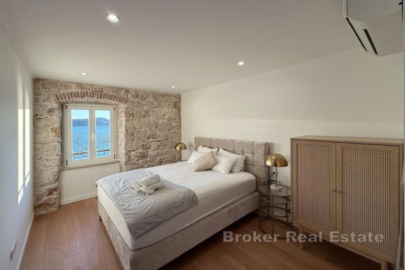 REDUCED PRICE! Apartment for exclusive sale in the very center of Šibenik. A luxurious newly renovated apartment located on the waterfront, in the first row to the sea. It is a modern furnished apartment that was completely renovated in the summer of 2022. The apartment with a total living area of 155 m2 is located in a smaller, quieter building on a plot of 199 m2. The staircase leading to the apartment stretches from the main Šibenik promenade all the way to the direct entrance to the apartment. From the very entrance, the apartment exudes spaciousness and a large amount of natural light. The oval-shaped apartment, in the heart of which is an unusual open terrace, offers direct access to all rooms and therefore more daylight. From the entrance, the apartment extends on two sides, the bathroom and the room start on the right, and in a circular effect, it goes over the living room and reaches the kitchen and dining room, which are also connected to two more rooms and a bathroom. The apartment consists of a kitchen, dining room, living room, 3 bedrooms and 3 bathrooms. The big interesting thing about this apartment is the terrace. This special element of stylish design effectively elevates the property to a higher level and offers it exceptional privacy and a luxurious interior look. This space can be used as a place to relax and bridge the border between the exterior and interior of the property. The gentle transition between exterior and interior offers a touch of nature in the very center of the apartment. The apartment is modernly decorated with the use of natural traditional materials such as wood and stone. These materials are an eternal classic of the modern era and really visually enhance the apartment and give it an additional pleasant touch. Considering the prime location and therefore the proximity of all important facilities, this apartment comes to the market as an extremely attractive property. An excellent opportunity not only as a place for everyday peace and life but also as an excellent investment with guaranteed excellent income. A big plus about the apartment is that it can be converted into two four-star accommodation units and used for tourist rental.