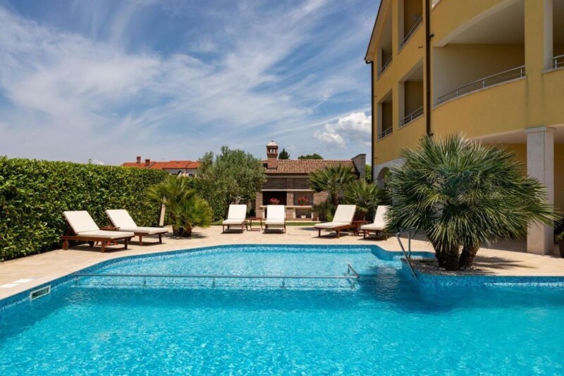 Location: Rovinj Built: 2014 City center: 6 km Sea: 5 km Airport distance: 27 km Inside space: 750 m2 Plot size: 1890 m2 Bedrooms: 11 Bathrooms: 11 Swimming pool: 80 m2 Parking: 7 Air-conditioner Cameras Patio Garden.