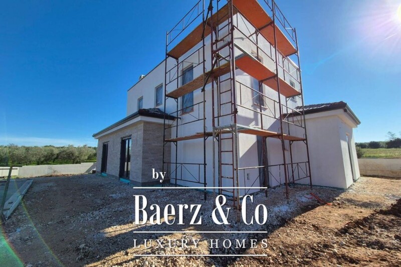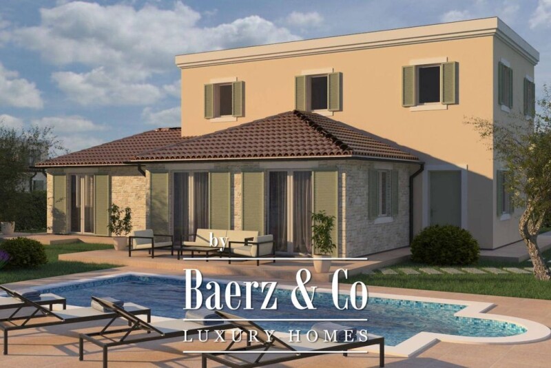 In Istria, not far from Poreč, there is a beautiful detached house with stone details. The house is spread over 2 floors, with a net area of 170m2: Ground floor: entrance hall, guest toilet, laundry room, open space kitchen, dining room and living room with access to the terrace with sun deck and infinity pool, bedroom with its own bathroom and access to the terrace, engine room. First floor: 2 spacious bedrooms with private bathrooms. The house also has 2 large covered parking spaces, preparation for solar panels, a heated pool and a beautiful garden of 838m2. Price €1.196.000,00 (VAT included). We are at your disposal for more information.