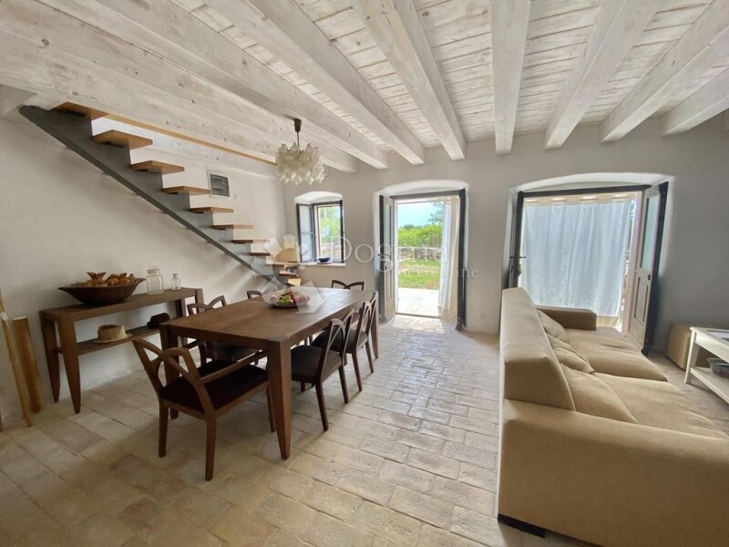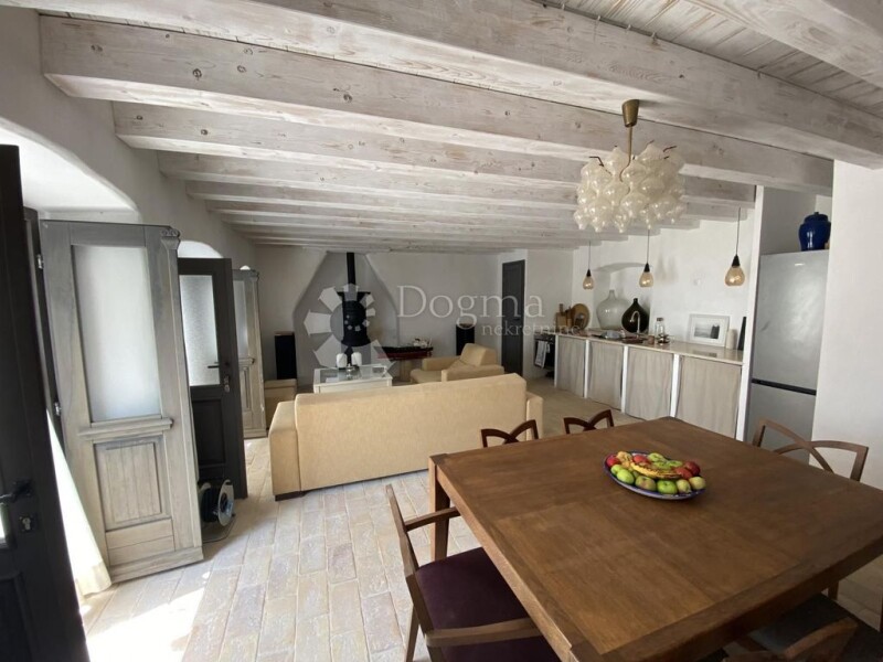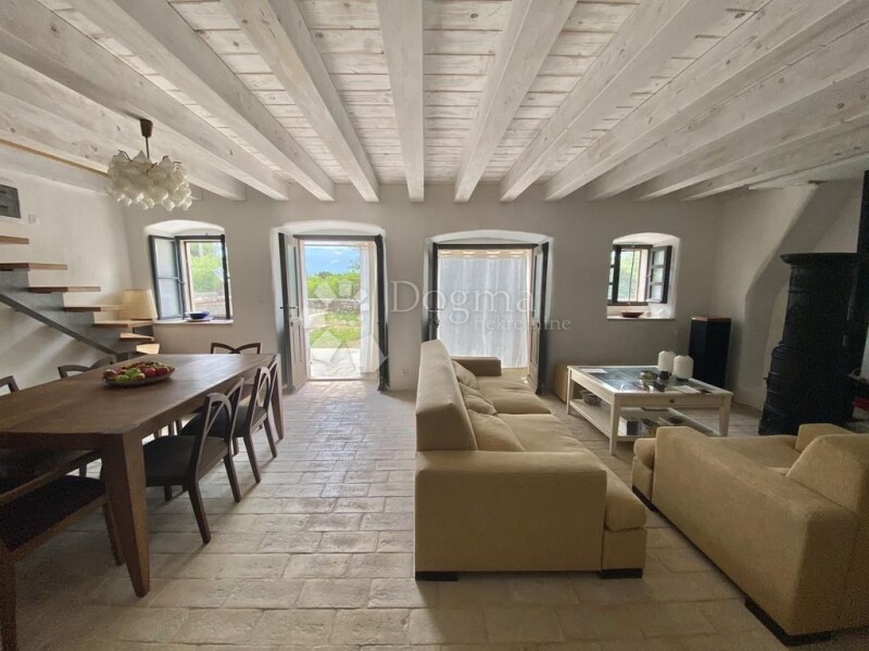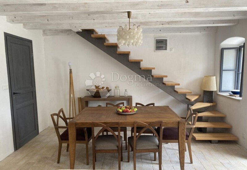 LABIN - ISTRIA A fusion of timeless Istrian tradition and Tuscan charm – just 15 minutes from the historic town of Labin! This authentic Istrian beauty of 120 m2 has been carefully restored according to traditional methods, with an emphasis on the use of ecological materials such as lime, sand and water. Its interior exudes elegance, enriched with carefully selected elements from Tuscany, including tiles, Travertine stone and an original 19th century stove, which further emphasizes the Italian spirit of this property. The house is spread over three floors: ground floor, first floor and attic, each of which exudes warmth and sophistication. The ground floor is designed as a space for socializing and enjoying: - Kitchen equipped with all necessary amenities. - Open concept living room and dining room with access to the terrace. - Toilet for added convenience. The terrace offers a peaceful oasis surrounded by greenery, ideal for relaxing or socializing in the privacy of nature. An iron staircase with wooden treads takes you to the first floor, where you will find: - Two spacious bedrooms with sea views. - An elegant bathroom decorated in a classic style. The stairs lead to the attic, used to the last detail, with an additional bedroom and bathroom. The floors are made of solid wood 3.5 cm thick, which gives the space a special warmth and solidity. The property has been completely renovated, including new water and electricity installations. In the courtyard there is a private cistern that collects rainwater - a practical solution for watering the garden. In addition to the main house, there is an additional plot of land of 617 m², with an authentic Istrian house of 80 m2 waiting for renovation, providing an opportunity for additional customization according to your wishes. The documentation is in order, ownership 1/1. Furniture is not included in the price, leaving you the opportunity to arrange the space to your own taste. This property enchants with its blend of tradition, style and peace – perfect for those looking for something special. * RESTORED HOUSE ACCORDING TO TRADITIONAL METHODS, WITH A FOCUS ON ECOLOGICAL MATERIALS * HOUSE OF 120 m² + another ruined house of 80 m2 on two floors * PLOT 823 m² + 617 m² = 1440 m² * TRAVERTINO STONE FROM TUSCANY * 19TH CENTURY STOVE * 3 BEDROOMS * 2 BATHROOMS WITH WC * 1 TOILET * NEW ELECTRICITY AND WATER INSTALLATIONS * 70 cm WIDTH OF WALLS * OWN COOL * COVERED SUMMER KITCHEN ROBERTA POROPAT License Agent Mob 00385 95/528-3152 roberta.poropat@dogma-nekretnine.com DAVID ROCE License Agent Mob 00385 99/759-1558 david.roce@dogma-nekretnine.com.