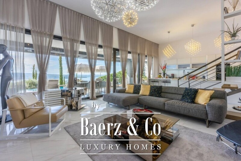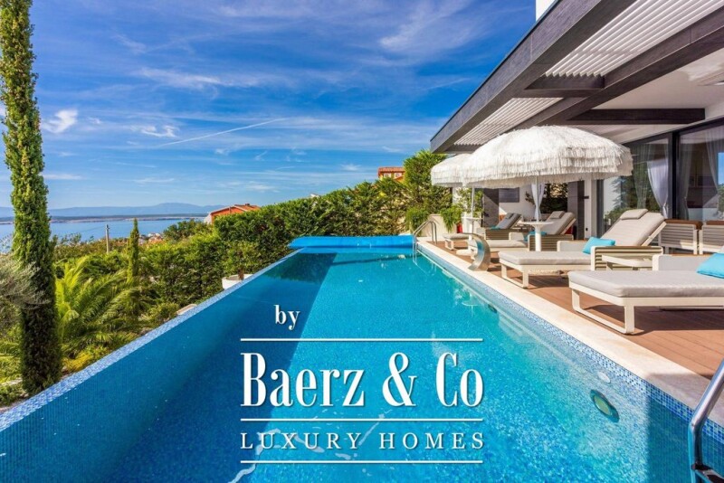 Crikvenica, Villa 400m², an exceptional architectural solution of modern design with a Mediterranean garden, infinity pool, sea view, wellness area next to the pool with shower, jacuzzi, restroom, storage space, and a summer kitchen on the west side of the garden. Top-quality construction and exceptional interior equipment guarantee a high standard of living or the continuation of a tourism business with a steady clientele and high revenue. The villa is a two-story, four-bedroom residence, with each room having its own bathroom. The ground floor features an open-plan space, living room, dining room, kitchen, decorative interior stairs, and a gallery leading to the first floor. Balconies, terraces, and the garden are spread across the levels, providing cozy spots for socializing. The ceiling height in the living area is 4 meters, filled with natural light and sunshine. A heat pump, underfloor heating and cooling, a special system for heating the outdoor pool, a jacuzzi with a sea view, a sauna, outdoor shower, WC, and a summer kitchen are just some of the amenities this Mediterranean beauty offers its new owners. Not to be overlooked is the meticulously designed garden, cascading with Mediterranean plants down to the parking area. An exceptional property for exceptional buyers.