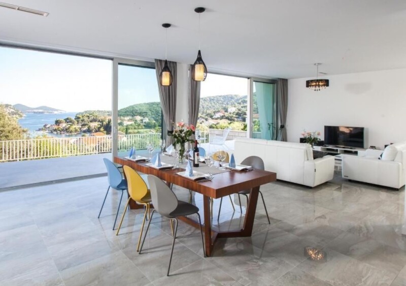 Location: Dubrovnik Built: 2014 Dubrovnik center: 13 km Sea: 0.3 km Airport distance: 33 km Inside space: 415 m2 Plot size: 741 m2 Bedrooms: 5 Bathrooms: 5 Swimming pool: 30 m2 Parking: 4 Air-conditioner Cameras Patio Garden.