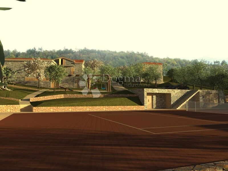 Kosoriga is located in the town of Buzet, in the County of Istria at 240 meters above sea level and covers an area of 0.57 km². According to the 2011 census, 19 inhabitants live in Kosoriga. The population is entirely Croatian. Surrounding settlements: Račički Brijeg, Račice, Korelići, Rimnjak, Krušvari, Draguć, Oslići, Martinci, Juradi and Medveje. In the offer, we received a property of 3718 m2 with two stone houses, the owner has a valid building permit to start construction. Three buildings are planned on the estate, two houses would be for accommodation, a swimming pool 11x5 m long, with a jacuzzi, sauna, tennis court, multipurpose playground, parking and an underground wine cellar. 25 were planted on the field old olives. Ideal for those looking for a secluded place. A building permit has been issued for two buildings, a third one needs to be requested. A small stream flows under the estate, which flows into the reservoir lake Butoniga. 12 km from Buzet, 58 km from Poreč, 74 km from Pula airport. A unique property For more information, call MIRJANA VLAHOVIĆ 00385-95-516-1641.