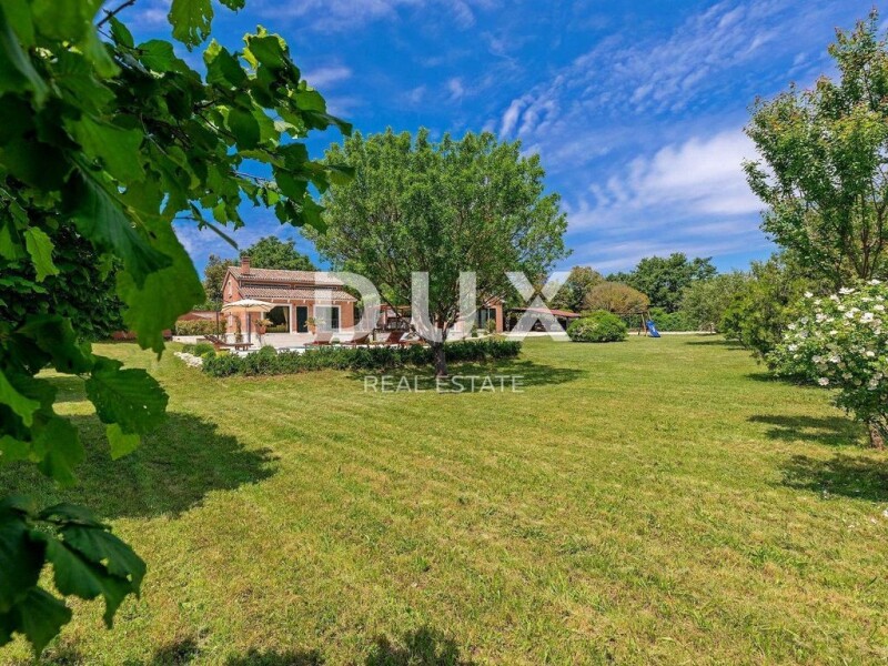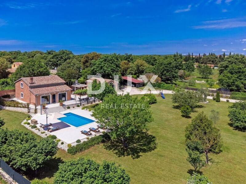 ISTRIA, ROVINJ - An oasis of comfort and peace near the beach The most attractive picturesque Istrian town of Rovinj, with its old town center under UNESCO protection, is an eternal inspiration for romantics and artists and one of the most developed tourist destinations in Croatia. It is located on the west coast of Istria and is adorned by a distinctly indented archipelago with as many as 14 islets and 6 rocks along 67 kilometers of coastline, which is a protected natural heritage. A beautiful indented coast, a specific mild Mediterranean microclimate, an excellent gastronomic offer, year-round cultural events and nice and friendly hosts make this small town magical. Surrounded by greenery in a gentle neighborhood in the suburbs of magical Rovinj, an oasis of comfort and peace near the beach is for sale. The harmonious property consists of a main house, a guest house and a swimming pool, and in addition to the microlocation, the property is also distinguished by the quality of its construction, which guarantees long-term satisfaction and quality of living. Houses of timeless design fit in shape and color into the village and the landscape, and each house is conceived as a tastefully decorated and well-equipped residential unit. The main house extends over two floors. The ground floor consists of an open concept space that unites the kitchen, dining room and living room, a guest toilet and two bedrooms with their own bathrooms. The loft consists of a gallery space and a bedroom with its own bathroom. The guest house extends over one floor and consists of a living room with a kitchen, a bedroom and a bathroom. Between the houses there is a summer dining room covered with a pergola and an open fireplace, and the perfect harmony is rounded off by a 32 m² saltwater swimming pool with a sun deck. The spacious garden is completely fenced, equipped with automatic irrigation and enriched with olives, fruit trees and various indigenous herbs and plants. This rarity on the market is an ideal opportunity for a comfortable family life as well as an investment for the purpose of an already established tourist rental. Dear clients, the agency commission is charged in accordance with the General Business Conditions: www.dux-nekretnine.hr/opci-uvjeti-poslovanja Iva Zajc Agent s licencom E- www.dux-istra.com ISTRIA, ROVINJ - An oasis of comfort and peace near the beach.
