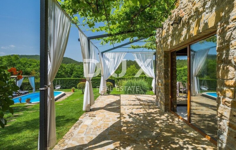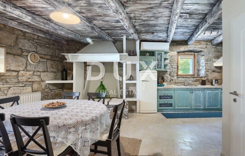 ISTRIA, BUZET - Rustic villa with pool and large garden Buzet is a small town on a velvety hill, surrounded by stone walls and seasoned with divine autochthonous Istrian gastronomy. It is widely known as the city of truffles, the sites of which are located precisely in the forests of the Mirna River valley. One of the most valuable features of this region is its untouched nature. Beautiful natural landscapes that merge coastal and mountain landscape with numerous hills and the valley of the Mirna river, give rise to unique views. Not far from Buzet, there is a fantastic rustic, semi-detached villa, suitable for tourist rental. The villa covers an area of 116 m2, was renovated in 2015 and is decorated in a rustic style, thus preserving the traditional values of the former house. The villa covers its surface through the ground floor and first floor. The open space of the ground floor is very bright and airy. It consists of a kitchen, dining room and living room with a beautiful fireplace. Internal stairs lead to the first floor of the villa, where there are two furnished bedrooms, both with private bathrooms. The villa has a large landscaped garden area of 1,070 m2 where there is a 24 m2 swimming pool which is ideal for summer refreshment, then a carefully arranged garden with an outdoor grill and several parking spaces. This villa is perfect for lovers of traditional and rustic style. Opportunity! Dear clients, the agency commission is charged in accordance with the General Business Conditions www.dux-nekretnine.hr/opci-uvjeti-poslovanja Tina Širol Agent s licencom E- www.dux-istra.com Stefani Kapel Agent s licencom E- www.dux-istra.com ISTRIA, BUZET - Rustic villa with pool and large garden.