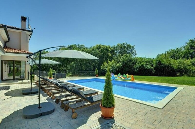Location: Rovinj Built: 2016 Rovinj center: 7 km Sea: 7 km Airport distance: 35 km Inside space: 400 m2 Plot size: 2447 m2 Bedrooms: 4 Bathrooms: 5 Swimming pool: 54 m2 Parking: 2 Air-conditioner Floor heating Garden.