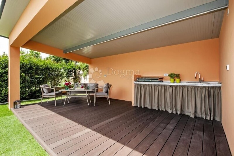 Luxury villa with a swimming pool near Rovinj. Located in a peaceful setting, this beautiful villa offers a comfortable living space ideal for a family or as a rental investment. On the ground floor of the villa there is a modernly decorated apartment with one bedroom, bathroom, kitchen and a spacious living room. On the ground floor there is also a rustic tavern with a fireplace, perfect for relaxing with friends, which has direct access to the outdoor pool and sundeck. On the first floor of the villa there are three luxurious bedrooms, two modern bathrooms, a fully equipped kitchen and a spacious living room. A large balcony offers a beautiful view of the surroundings and allows you to enjoy peaceful summer evenings. For pleasant moments inside the villa, an indoor fireplace in the common room is responsible, ideal for relaxing in the colder months. Here you will enjoy relaxing evenings with billiards, table tennis or to the sounds of the guitar. The villa is equipped with central gas heating, while air conditioning ensures coolness during summer days. The outdoor area of the villa includes a spacious garden with a swimming pool and sundeck, perfect for enjoying the sun or relaxing in the shade of the terrace. The chirping of birds and the sounds of nature make this place even more magical. Surrounded by green bushes, the villa offers complete peace and privacy. It is ideal for tourist rentals, but also offers the possibility of a functional family home with the possibility of dividing it into two separate apartments with a common room and a swimming pool. The villa is located near all necessary amenities, restaurants, shops and cafes, at a distance of only 1 km, which further increases its attractiveness.