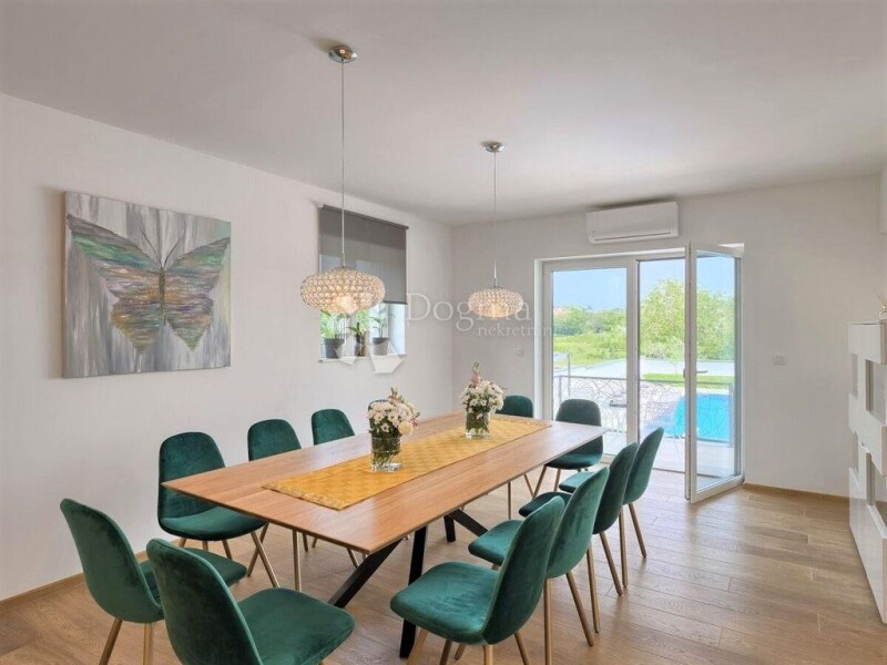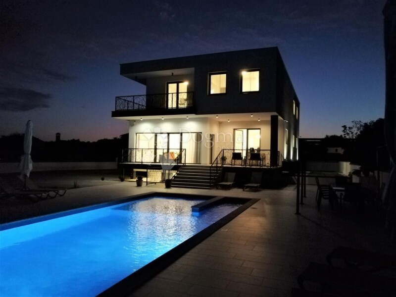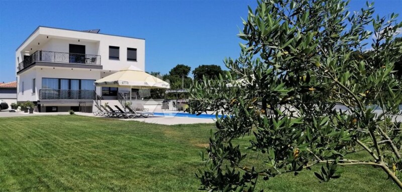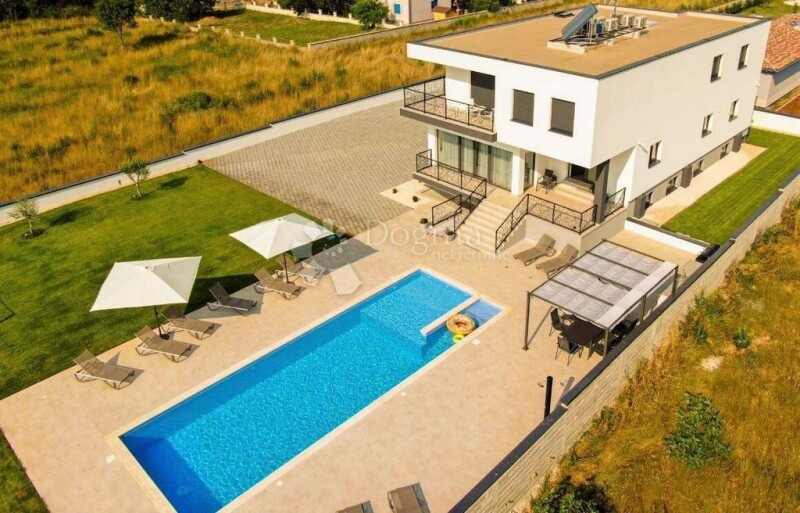 The County of Istria is famous as one of the most suitable regions for life, and offers many natural beauties supported by a warm Mediterranean climate and a very cordial resident population. In the very south of the Istrian peninsula, within the city of Pula, in a very attractive location in the immediate vicinity of the sea, there is the village of Štinjan, which is improving its facilities and infrastructure year after year, and the demand for the same is getting bigger and bigger. This beautiful high-quality, modern, self-sustainable house with a swimming pool of 570 m² and a garden of 1758 m² is located right in Štinjan. The house consists of three floors. The first floor is the basement, which is located along the entire surface of the house and leaves the future owner with the opportunity to use the same part of the house for the purpose of a tavern, gym, wellness, playroom, etc. On the ground floor, which is 190 m², there is a large, bright living room with access to the terrace and garden of the house, kitchen made to measure and equipped with high-quality appliances that enable quality and economical use, spacious dining area, spacious bedroom and bathroom. On the first floor, there are four bright and spacious bedrooms, each of which is equipped with a separate bathroom, television, sliding wardrobe, air conditioning unit, and each room has access to a comfortable shared terrace. In the beautiful, green garden there is a 64 m² swimming pool, a large sunbathing area with an outdoor shower, a hand-made stone fireplace next to which there is a spacious covered area for dining and enjoying the wonderful surroundings. The villa has its own fresh water supply, which is purified through multiple filters, stored in large boilers and used for the garden and household. In addition to its own water supply, there are solar panels on the Villa's flat roof. These two facts give the real estate, in addition to its modern design, spaciousness and quality, a self-sustaining, economical and ecologically green side. In addition to the mentioned Villa, not only is a luxurious, self-sustainable property ready to move in for sale, but also its location, which is located in a peaceful environment, yet close to the sea and all the accompanying facilities for life, which gives the future buyer the opportunity to enjoy it in the sense of a family of life, as well as engaging in the catering activity of renting and quick return of invested funds.