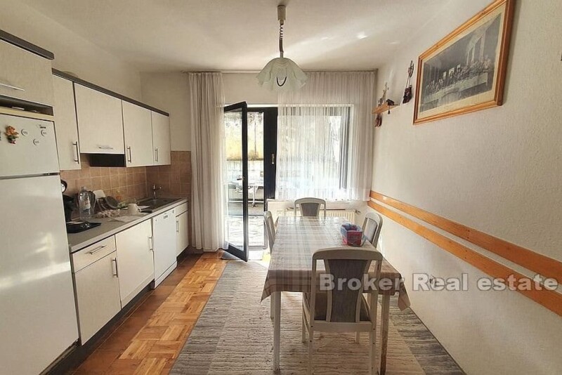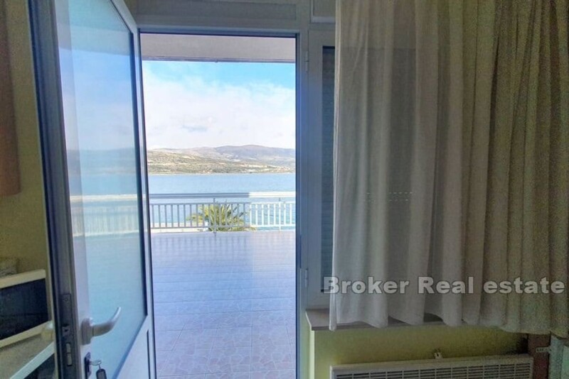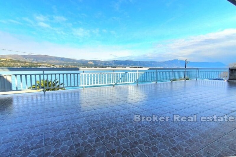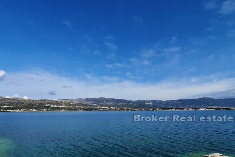 An excellent property for a combination of living and business. Located in an exceptional position in the first row to the sea and the beach, not far from the city of Trogir and Split Airport. Along the coast, you can enjoy a sensational view of the sea and a pleasant stay in the spacious outdoor areas terraces. Built on a plot of land of 574 m2, the total living area is approximately 480 m2 distributed over the ground floor, first, second, third floor and attic. On the ground floor there are two business spaces with a covered terrace that offer the possibility of renting for a shop, bakery, confectioner, etc… and a garage for one car. On the first floor there is a large terrace of approximately 120 m2 and three apartments. One apartment consists of a living room, a bathroom and two bedrooms. The second apartment consists of living room, bathroom and one bedroom, while the third apartment is a studio and consists of a living room works and separate bathrooms. The second and third floors consist of two duplex apartments. Bathrooms, kitchen and living room are located on the second floor, while on the third floor there are three bedrooms and bathrooms. The attic of approximately 30 m2 is unfinished. The house also has an tavern/storage room and two outside rooms of 8 m2 and 9 m2 with a fireplace. The property requires additional investments. The advantage is also the two cascading grounds/lots at the back which offer the possibility of building a swimming pool with a sunbathing area. City water supply, sewerage and electricity are connected.