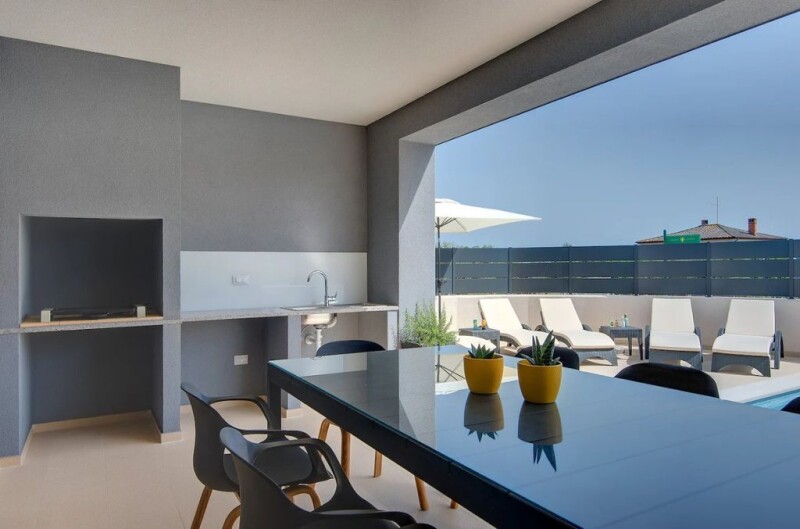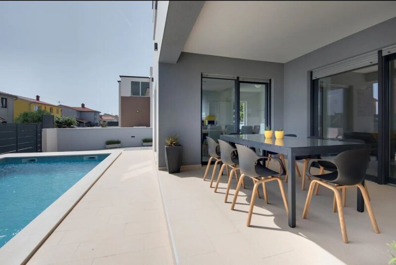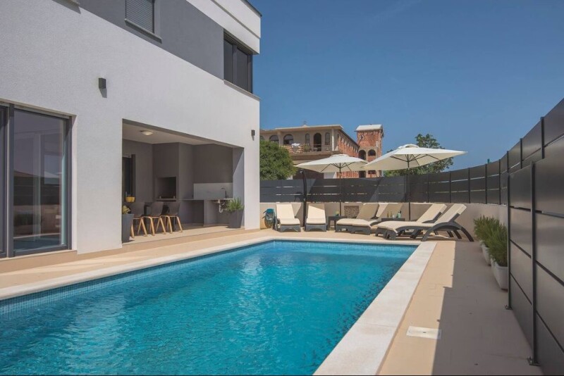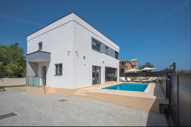 Modern Villa Near the City Center of Pula, 4500 meters from the beach! Located in a peaceful suburb of Pula, just 4 kilometers from the beaches and the city center, this stylish and high-quality villa with a pool offers a perfect blend of comfort and convenience. Built in 2019 with meticulous attention to detail, this villa provides everything a family needs for a secure and tranquil lifestyle. It’s also an excellent opportunity for those looking for an investment property in the tourism sector. The villa features a total of 172 m² of living space, divided between the ground floor and the upper level. The ground floor includes a spacious living room, a bathroom, and a kitchen with a dining area that opens to a covered terrace. From the terrace, you can directly access the pool area, which spans 32 m² and comes with a sunbathing area. Upstairs, there are three comfortable bedrooms, each with its own en-suite bathroom, offering privacy and comfort. The home is equipped with underfloor heating in the bathrooms, while the other rooms are heated with air conditioning units. There is also a chimney connection on the ground floor for a potential fireplace. The villa comes fully furnished and is ready for immediate move-in. The villa is situated on a 252 m² land plot, designed to offer everything needed for a perfect stay. It includes private parking for two cars, a covered summer terrace with an outdoor kitchen and barbecue, and a 32 m² swimming pool. The outdoor space is fully enclosed, making it ideal for relaxing and entertaining with family and friends, as well as providing a safe play area for children. The landscaping is designed for easy maintenance, requiring minimal upkeep of the lawn and plants. ADDITIONAL INFORMATION: The villa is sold fully furnished, including all furniture.Underfloor heating is installed in the bathrooms, while the remaining rooms are heated by air conditioning units.The owner holds full ownership (1/1), as a private individual.All rooms are air-conditioned, and there is a connection for a fireplace on the ground floor. Ref: RE-U-33967Overall additional expenses borne by the Buyer of real estate in Croatia are around 7% of property cost in total, which includes: property transfer tax (3% of property value), agency/brokerage commission (3%+VAT on commission), advocate fee (cca 1%), notary fee, court registration fee and official certified translation expenses. Agency/brokerage agreement is signed prior to visiting properties.