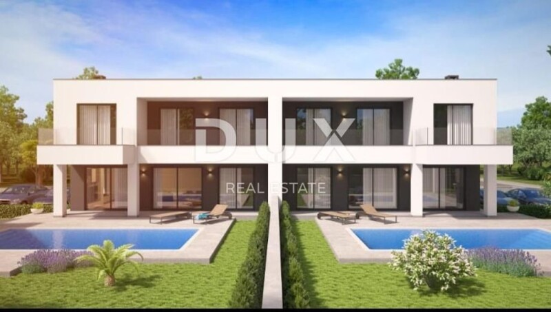 ISTRIA, LABIN - High-quality modern semi-detached house in a very quiet location! In the offer of DUX real estate, we offer a very high-quality semi-detached building! LOCATION: To begin with, it is important to point out that this property is located in a well-kept cul-de-sac with several recently built houses. The distance from the first beaches is 10 minutes' drive, and the distance from the center of Labin and the first shopping chains is 5 to 7 minutes' drive. DESCRIPTION OF THE PROPERTY: The property in question is a semi-detached house with a total area of 188 m2. The living area of the house is 155.68 m2 + auxiliary building of 32 m2. Upon entering the villa, we come across a hallway and a guest toilet, then we access a beautiful open space area with large glass walls where there is a living room area, as well as a kitchen and a dining room with additional storage in the kitchen area and the area under the stairs. Glass walls from the living room separate us from the outdoor covered terraces overlooking the pool and garden. The stairs lead to the second floor, where there are 3 bedrooms with access to the terrace, as well as two bathrooms and an additional storage room. The area of the plot is 629 m2, and there is an 8x4 swimming pool as well as an auxiliary building of 32 m2 in the garden. The auxiliary facility is located right next to the swimming pool and is designed as a covered summer kitchen, and there is also a toilet within the facility. The space of the auxiliary object is an ideal place to spend time with family and friends during beautiful and sunny days. As part of the garden, there is also a space where they planned 2 to 3 parking spaces. The property is sold in the condition as seen in the photos with the completion of the exterior environment and fences. There is also the possibility of completing the works, but depending on the agreement. The property has a bioseptic tank. DOCUMENTATION: Properly owned by a private person. The key information is the guarantees on the object itself as well as individual items, which ensures the future buyer complete confidence in the quality of his future real estate. INTERESTING: Next to the existing building there is a plot of land for a second duplex with a building permit and paid utilities, therefore there is a possibility of buying land if someone would like to have two buildings in the same place or as an investment for tourism or if it is a large family! For all other details and information, feel free to contact us! Dear clients, the agency commission is charged in accordance with the General Business Conditions: www.dux-nekretnine.hr/opci-uvjeti-poslovanja Ivana Škoro Agent s licencom E- www.dux-istra.com ISTRIA, LABIN - High-quality modern semi-detached house in a very quiet location!.