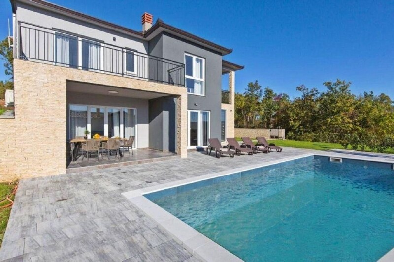 Price went down from 670 000 eur to 630 000 eur! Modern new building with a panoramic view in Labin area! Total area is 147 sq.m. Land plot is 890 sq.m. The quality-built villa extends through the ground floor and first floor. The ground floor contains an open concept living room, dining room and kitchen with access to a covered terrace, toilet, storage room and laundry room. Upstairs there are three bedrooms with private bathrooms and two terraces. For heating/cooling, the house uses air conditioning inverters in every room, underfloor heating and the possibility of installing a wood or pellet fireplace in the living area of the house. It is fully furnished and equipped and is being sold as such. The yard is completely fenced and landscaped and contains a swimming pool with a sunbathing area and parking spaces. This modern newly built house in a quiet village with a panoramic view of the countryside is an ideal property for family life or as an investment for rental for tourist purposes. Villa is built in 2022-2023. Now it is in function as a renting property, fully equipped and furnished. Ref: RE-U-16020Overall additional expenses borne by the Buyer of real estate in Croatia are around 7% of property cost in total, which includes: property transfer tax (3% of property value), agency/brokerage commission (3%+VAT on commission), advocate fee (cca 1%), notary fee, court registration fee and official certified translation expenses. Agency/brokerage agreement is signed prior to visiting properties.