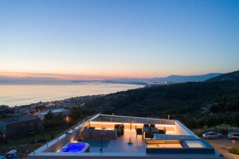 Modern villa with sea views is offered for sale near Split - perfect sample of contemporary architecture! The area of this airy and light villa is 215 m2 and is located on a plot of 620 m2. The villa consists of a modern kitchen, dining room, living room, 4 bedrooms 3 bathrooms, roof terrace with whilrpool. The whole villa has underfloor heating, video surveillance, smart house, central vacuum cleaner, swimming pool is heated. Additional bonuses are landscaped garden, sundeck area, BBQ zone and outfdoor dining. Villa benefits swimming pool, modern sophisticated design, panoramic glazing. Ref: RE-LB-IRO1250Overall additional expenses borne by the Buyer of real estate in Croatia are around 7% of property cost in total, which includes: property transfer tax (3% of property value), agency/brokerage commission (3%+VAT on commission), advocate fee (cca 1%), notary fee, court registration fee and official certified translation expenses. Agency/brokerage agreement is signed prior to visiting properties.