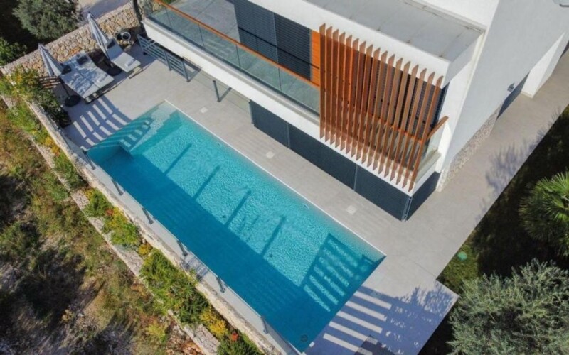 Luxury villa in Crikvenica with heated swimming pool and panoramic views of the sea and Kvarner Bay! Villa belongs to a new modern condominium of luxury villas. This stunning, detached villa of 283 m² is situated in an exceptional location, just 600 meters from the coast. It features a spacious terrace offering breathtaking panoramic views of the sea and Kvarner. The villa blends modern architecture with Mediterranean style, highlighting high-quality construction and an elegantly designed interior and exterior. The interior spans two floors connected by an internal staircase. The upper level includes the entrance, while the lower level opens onto a spacious courtyard. On the lower level, you’ll find a kitchen connected to the dining and living rooms, along with a pantry and a guest toilet. This level also has a study that can be converted into an additional bedroom, with large windows flooding the space with natural light and providing access to the yard from all sides. The upper level includes four bedrooms, two with en-suite bathrooms, while the others share a spacious bathroom. A lovely covered terrace on this level offers an ideal spot for relaxation. The main bedroom includes a walk-in closet and access to the terrace from both the bedroom and bathroom, where a large bathtub offers a gorgeous view of the sea. The villa's interior is designed in a modern, minimalist style with high-quality furnishings, including designer pieces and custom furniture. Professionally designed, the space perfectly balances functionality and aesthetics. The villa is sold fully furnished, with a premium kitchen and top audio-video equipment included. Outside, the terrace offers a barbecue area and a large dining table for al fresco meals, while the heated pool with spa functions, ambient lighting, and a waterfall creates a luxurious swimming experience. The 325 m² landscaped yard includes a heated outdoor pool, sun deck, and covered terrace, providing a perfect outdoor retreat. The courtyard also leads to an additional area housing a wellness center, bathroom, and utility room. The outdoor space is enhanced with lush landscaping, featuring native plants and trees like olives, lavender, and rosemary. Equipped with a Daikin heat pump for underfloor heating and ducted cooling, solar panels for hot water, electric shutters, controlled lighting, and smart systems for pool and irrigation management, the villa also includes a smart home system for mobile app control, along with alarm and video surveillance, and coded, secure entrance doors. The property includes three parking spaces, a double garage with an electric vehicle charger, and two additional garage spots. This unique villa offers an outstanding opportunity for seasonal rental or personal enjoyment. To schedule a viewing, contact our agent with confidence. Consultations are also available in German. Ref: RE-U-34630Overall additional expenses borne by the Buyer of real estate in Croatia are around 7% of property cost in total, which includes: property transfer tax (3% of property value), agency/brokerage commission (3%+VAT on commission), advocate fee (cca 1%), notary fee, court registration fee and official certified translation expenses. Agency/brokerage agreement is signed prior to visiting properties.
