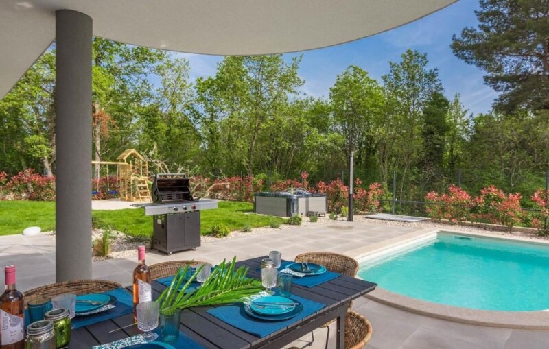 Location: Poreč Built: 2019 City center: 2 km Sea: 0.5 km Airport distance: 66 km Inside space: 286 m2 Plot size: 1201 m2 Bedrooms: 5 Bathrooms: 5 Swimming pool: 47 m2 Parking: 4 Air-conditioner Gym Sauna Cameras Patio Playground Garden.