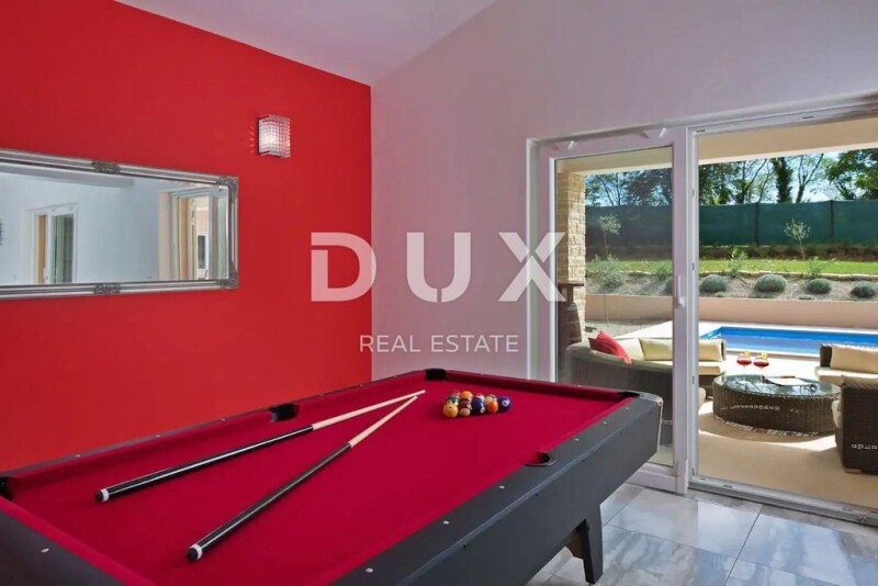 ISTRIA, LABIN - A comfortable refuge from the hustle and bustle of life On the south-eastern coast of Istria, where green hills meet the sea, where nature and heritage meet, there are two towns of similar size, but with different but mutually complementary characters - Labin and Rabac . The picturesque town of Labin rises on a hill 320 m high, only five kilometers from the white pebble beaches in Rabac. Intertwined with rich history and mining that marked this region, Labin, which was declared an independent republic for a short time, is today a fascinating city of contradictions; old and new, history and present, tourism and art. In the vicinity of the town of Labin, a comfortable refuge from the hustle and bustle of life is for sale. This property is an example of a modern lifestyle in a natural environment with all modern amenities. A comfortable, functional and elegant property that makes life easier and better. The living area covers an area of 300 m² and extends over three floors; basement, ground floor and first floor. The basement consists of a spa and wellness area with a hot tub, sauna, gym and bathroom. The ground floor is dominated by a spacious open space that combines a corner with a pool table, a living room, a dining room and a kitchen with access to a spacious covered terrace. On the same floor there are two bedrooms with their own bathrooms, a guest toilet and a storage room. An internal staircase leads to the first floor where there are two bedrooms with private bathrooms and a covered terrace. The spacious, well-kept garden is completely fenced and equipped with an automatic irrigation system. The yard is dominated by a heated saltwater pool of 42 m², and a children's playground and a grill area with an open fireplace further enhance it. The property is fully furnished and equipped and is being sold as such. This property provides complete comfort and is an ideal opportunity for a peaceful family life as well as an investment in a successful tourist rental. Dear clients, the agency commission is charged in accordance with the General Business Conditions: www.dux-nekretnine.hr/opci-uvjeti-poslovanja Iva Zajc Agent s licencom E- www.dux-istra.com ISTRIA, LABIN - A comfortable refuge from the hustle and bustle of life.