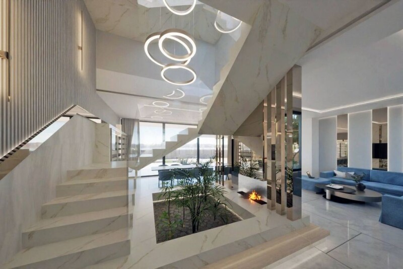 Villa Mirage is a luxurious designer villa under construction. It is located in an attractive area near Zadar, a city renowned for its numerous historical landmarks, famous tourist attractions, and vibrant entertainment offerings. It is positioned on a hillside and provides a stunning view of the crystal-clear sea. With its perfect blend of privacy, elegance, and proximity to all necessary amenities, this villa is an ideal place for peaceful family living or an unforgettable vacation. The villa is set on a 1.020 m2 plot and spans 500 m2 of living space, elegantly distributed across 3 floors. Every room has been meticulously designed, focusing on high quality and functionality standards while maintaining a perfect balance between elegance and comfort. The open-concept ground floor includes a living room, kitchen, and dining area, where the spacious layout offers abundant natural light and uninterrupted sea views thanks to large glass walls. The living room opens onto a covered terrace, where you’ll find a beautiful pool with a sunbathing area and a comfortable lounge zone, ideal for relaxation and enjoyment. This floor also features a gym, sauna, bathroom, and entertainment room. The villa’s first floor houses four spacious and elegant bedrooms, each with its own en-suite bathroom and walk-in closet. All rooms have access to a shared covered terrace with a sea view. What sets Villa Mirage apart is the spectacular rooftop terrace with a pool, offering a panoramic sea view, and is an ideal place for complete relaxation and enjoyment. Wine enthusiasts will also be delighted by the exclusive wine wall storage, which completes this luxurious property. All villa floors are connected by an internal staircase and elevator, with two garage spaces and two outdoor parking spots available. During the construction, only the highest quality materials and equipment are used, with special attention given to design details. The villa is expected to be completed in the summer of 2025. The villa is sold fully furnished and equipped. Villa Mirage is a unique property that perfectly combines luxury, elegance, privacy, functionality, and a prime location near the sea.