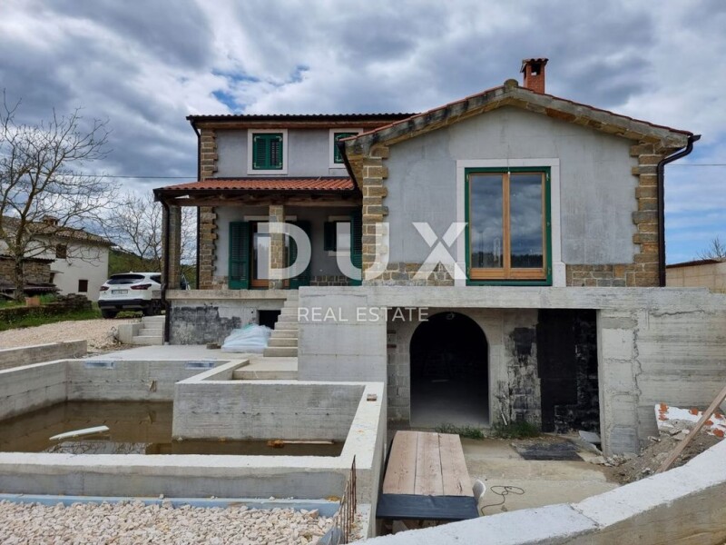 ISTRIA, PAZIN - Detached house with pool Pazin is the unavoidable heart of Istria and the seat of the Istrian County. It is a place where the residents are extremely enterprising and very hardworking. It is a safe and open city tailored to man, an educational and cultural center that preserves the Istrian identity and its tradition. A place where life takes place with equal intensity in summer and winter. Near the interesting Pazin, in a quiet village there is this beautiful house with a swimming pool whose living area of 270 m2 extends over three floors. In the basement of the house there is a room for socializing, toilet, storage and laundry. The ground floor has a kitchen with dining area, spacious living room, toilet and one bedroom with private bathroom. Upstairs are two more bedrooms with private bathrooms. Already from the ground floor, this property offers a wonderful view of untouched nature. The yard area is 527 m2 and contains a heated pool of 30m2 with a beach. There are also two parking spaces, one of which is covered. It is currently in a high roh bau phase, and the planned completion is expected at the end of 2022. The price is expressed for a finished, habitable house, including furniture. Without furniture the price is 350,000 Euros. Dear clients, agency commission is charged in accordance with the General Terms and Conditions: Tina Širol Agent s licencom E- www.dux-istra.com ISTRIA, PAZIN - Detached house with pool.