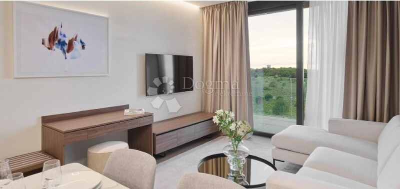 APARTMENTS IN AN APARTHOTEL On one of the most beautiful peninsulas in Europe, in a secluded location surrounded by the sea, close to all urban, rural and tourist attractions of northwestern Istria, hedonists enchanted by the Mediterranean will finally find their space under the sun. High-quality sustainable construction, Mediterranean horticulture and open views with an innovative concept of property maintenance and management are just some of the benefits you get by purchasing this property. The apartments for sale are part of an APARTHOTEL consisting of 3 expansions. All apartments consist of 2 spacious bedrooms, no smaller ones. The apartments consist of an entrance area, bathroom, toilet, , laundry area, and a spacious living room with kitchen and dining area. The living room and bedrooms have access to a balcony with an open view. The remaining square footage is from 84-122m2 distributed from the ground floor to the third floor. The price varies depending on the expansion, square footage and view. for INDIVIDUALS prices WITH VAT - €679,000-1,070,000 for LEGAL ENTITIES prices WITHOUT VAT €543,000-849,000 Inside the luxury resort there are all the facilities and services you could wish for: * rooftop the largest infinity pool in Europe, 105m long, part of which is an indoor pool * restaurants * gym * wellness & spa * concierge * garden pool * beach club with restaurant and bar * electric car charging * 18-hole golf courses not far from the resort - one existing, and a new one under construction right next to the hotel. It is possible to completely leave the care of the apartment to the resort, thus ensuring a carefree vacation and a return on investment. It is also possible to rent it out during the period when you are not staying there. Specification of standards and equipment: * energy class A+ * the aparthotel has a ventilated facade, ETERNIT panels, 15 cm of thermal insulation * lift-and-slide glass walls * designer granite large-format ceramics * multi-layer oak parquet in the living room and bedroom * high-quality sanitary equipment * heating and cooling is solved by a system of multifunctional four-pipe air-to-water heat pumps The price includes PARKING, FURNITURE. Feel the luxury of your own property and a service that will pamper you. For more information, arrange a meeting and viewing.