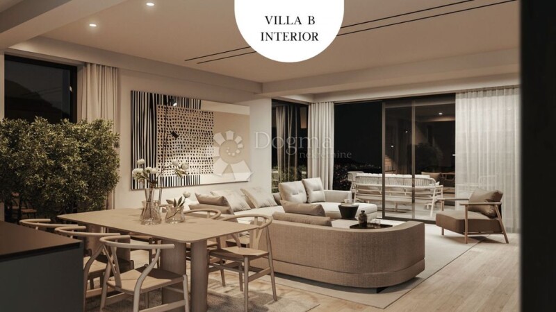 Istria, Umag, Novigrad - surroundings B-21 Welcome to the future of luxury living on the coast! A resort that is only in the construction phase, but already entices with its location, i.e. the combination of proximity to big cities and seaside idyll. It is located between the forest and the sea and is only 100 meters from the coast. If you are a fan of the metropolitan atmosphere, Ljubljana (1:30h), Venice (2h), Zagreb (2:45), Milan (4:30h) and Vienna (5h) are only a few hundred kilometers away. Everything here is designed and engineered to make your life luxurious and comfortable. Within the resort, you have access to a range of facilities, including a wellness and SPA center, a modern fitness center, a children's area for your little ones, a cafe and a wine bar, and there is also a charging station for your electric pets. You can be safe inside the settlement because the settlement is under video surveillance. This villa (B21) is located on a plot of 349m2, and it covers 212m2, of which the interior space is 194m2, while the terraces are 18.11m2 (calculated with a coefficient of 0.75%). It consists of as many as 3 bedrooms (2 of which are en suite), 3 bathrooms, a spacious living room with a kitchen and dining room, and access to a well-kept garden with a sunbathing area, a swimming pool, and 2 parking spaces. All properties in the resort provide a sense of comfort and practicality, with underfloor heating on a heat pump for a pleasant climate during the winter and cooling via air conditioning. Villas are sold on a turnkey basis, including fully furnished and ready-to-move-in property WITHOUT furniture. The resort consists of 21 villas and 16 apartments, offering three different types of villas and four different types of apartments. Villas range from 202m2 to 274m2, with prices from €808,000 to €1,316,000, while apartments offer a compact luxury option with areas from 53m2 to 128m2 and prices from €279,000 to €627,000. ALL PRICES ARE EXCLUDING VAT. The works have already started in September 2023, and the resort is expected to be ready for you during the summer of 2025. Don't miss your chance to be a part of this enchanting seaside paradise in the making. Contact with confidence, Leonida Meglaj licensed agent +385 95 905 98 98.