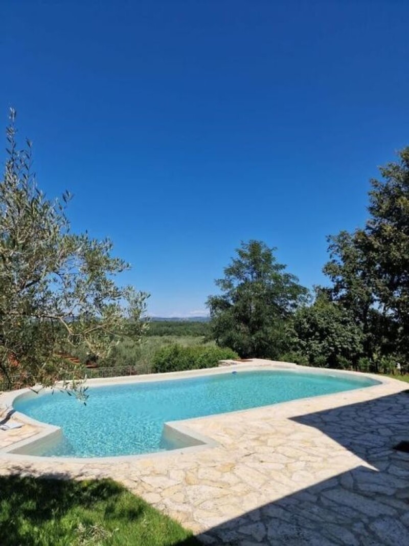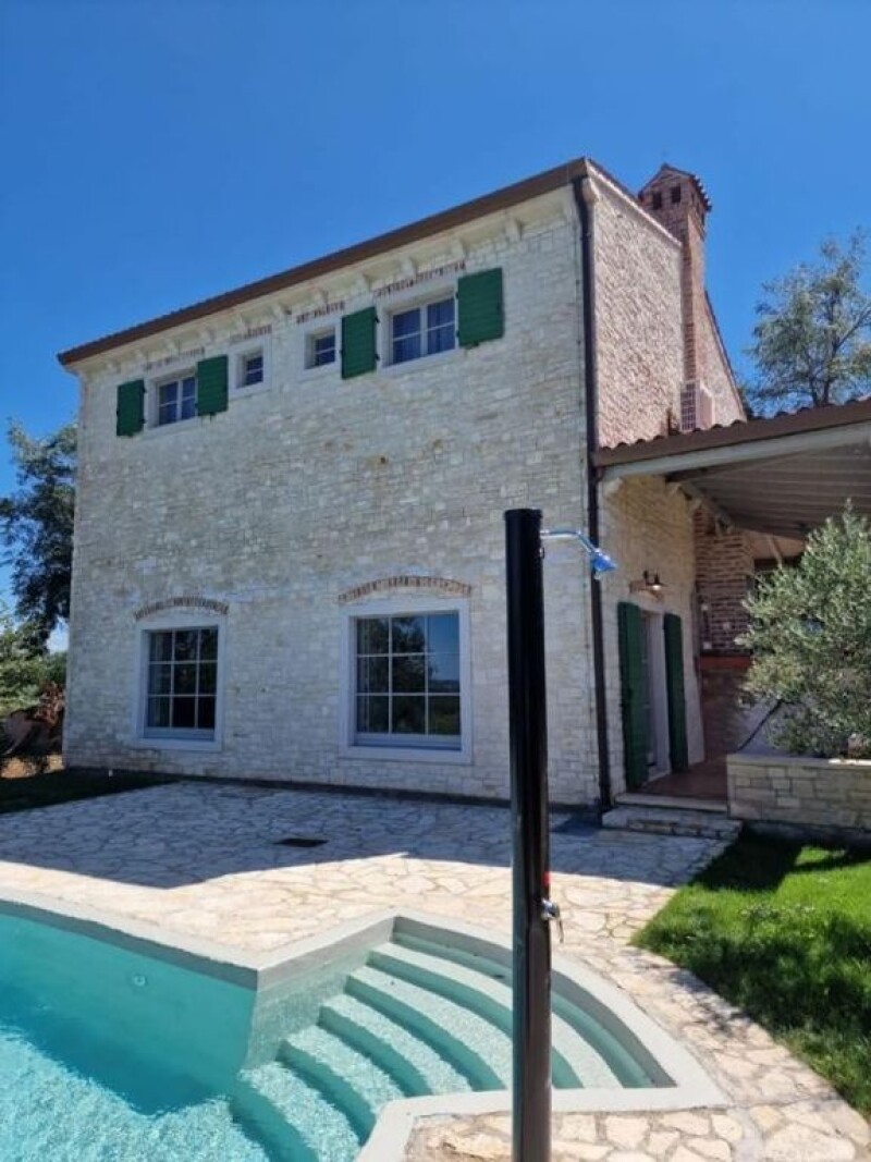 A beautiful stone house with a sea view in Porec with distant sea views! Total area is 200 sq.m. Land plot is 781 sq.m. The house boasts a well-designed layout spread across two floors. The ground floor features a spacious living room with direct access to the landscaped garden, complete with a swimming pool and sunbathing area. The upper ground floor houses a kitchen and dining area with access to a covered terrace offering stunning views of the surrounding nature and the sea. Additionally, this floor includes a bedroom with its own bathroom. The first floor comprises four more bedrooms and three bathrooms. The property is equipped with both heating and cooling systems via air conditioning, and there is also a chimney suitable for a stove. The house is being sold fully furnished and decorated, making it ready to move in or rent out immediately. Its location, layout, and comfort make this beautiful property an excellent investment opportunity! Ref: RE-U-26148Overall additional expenses borne by the Buyer of real estate in Croatia are around 7% of property cost in total, which includes: property transfer tax (3% of property value), agency/brokerage commission (3%+VAT on commission), advocate fee (cca 1%), notary fee, court registration fee and official certified translation expenses. Agency/brokerage agreement is signed prior to visiting properties.