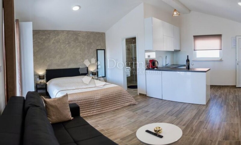 A luxuriously decorated villa with a swimming pool and equipped with modern furniture is for sale. The facility is equipped with video surveillance, video intercom, alarm system, fire alarm, SATV system, heated pool (heat pump), optical Internet, wi-fi system throughout the facility, solar heated hot sanitary water, automatic irrigation, own laundry. The facility has its own parking lot with 4 parking spaces, which is under video surveillance. The building is adapted for family life, as well as for the well-established tourism rental business (4 stars). The building was completely renovated from the ground up in 2018 with all new water, sewage, and electricity installations, and a thermal facade was installed. If necessary, it is possible to split the apartment if the new owner wants it and has the need, because each apartment has a separate entrance door that can be reached via a staircase that has a main entrance door (principle of a residential building). Dimensions: 1. Ground floor: one-room apartment (45m2), with bathroom/toilet, kitchen, bedroom and living room + covered terrace (15m2) 2. 1st floor: one-room apartment (45m2), with bathroom/toilet, kitchen, bedroom and living room + semi-covered terrace (14m2) 3. 2nd floor: studio apartment (35m2) with bathroom/toilet, kitchen, bedroom and living room + loggia/terrace (20m2) 4. Swimming pool size 20m2 with a large sunbathing area of 100m2 5. Laundry and engine room 25m2 with separate entrance 6. Closed staircase (30m2) 7. Parking with 4 parking spaces The distance from the bus station is 100 meters, the distance from the center and the beach is 15 minutes' walk. The facility is located in a flat and accessible part of Cavtat. For any additional information and/or viewing, contact me with confidence.