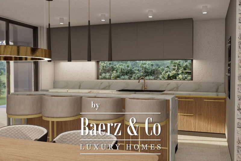 In Poreč, 400m from the beach, there is this beautiful villa surrounded by olive groves. A perfect combination of modern construction and natural beauty. 3 villas will be built on the same plot, each with the same layout and panoramic view. First floor: consists of entrance area, guest toilet, open space kitchen with island, dining room and living room, storage room with laundry room. In the entire lower part, there is a sliding glass wall that leads to a covered terrace, a sundeck, a heated pool, a summer kitchen, a sauna and a bathroom. Second floor: consists of a hall/hallway, 3 bedrooms with bathrooms and exits to a covered terrace. From the second floor, there are external stairs that lead you to the roof, where there will be a jacuzzi, a sunbathing area and a corner for socializing and relaxing with a panoramic view. The features of the villa are that it is full of natural light, designed in accordance with the latest and highest quality standard of living. Only the highest quality materials and furniture were used in the construction and furnishing. Planned start of construction in 2024. We are at your disposal for additional information.
